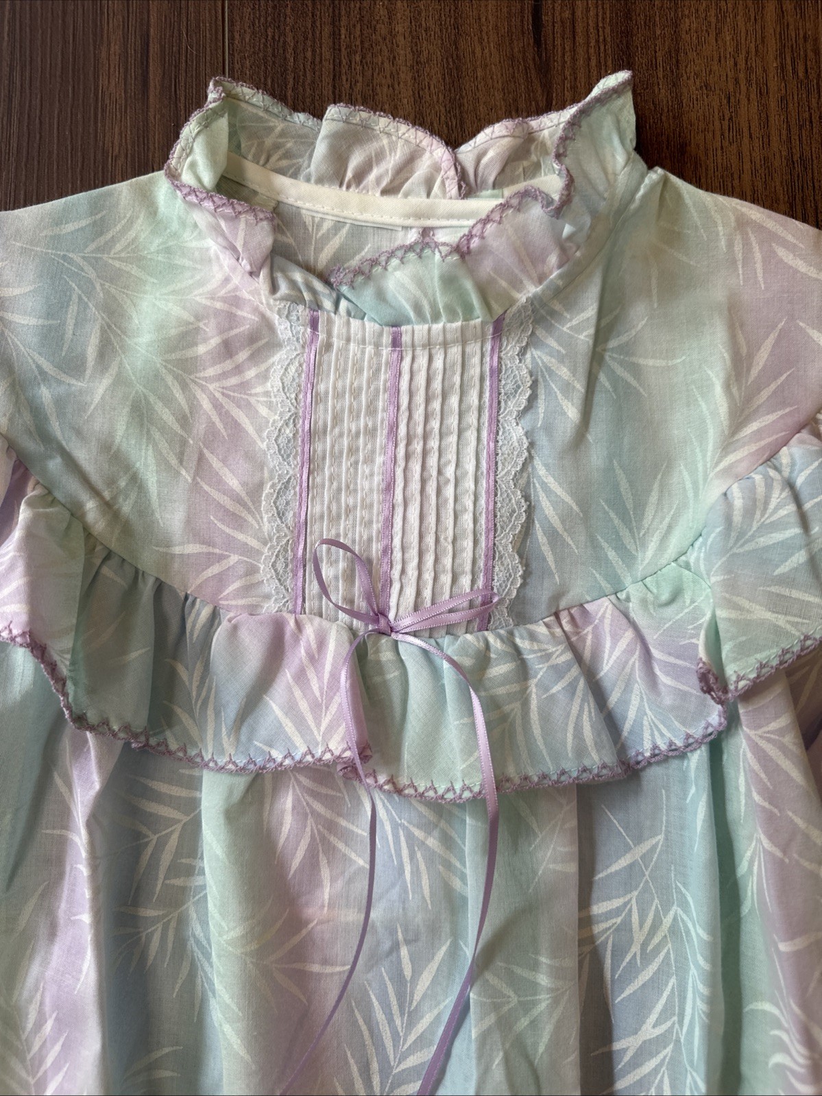 как выглядит New NOS Vintage 80s Blue Purple Print Ruffled Nightgown Girls Sz 8/10 Kid Duds фото