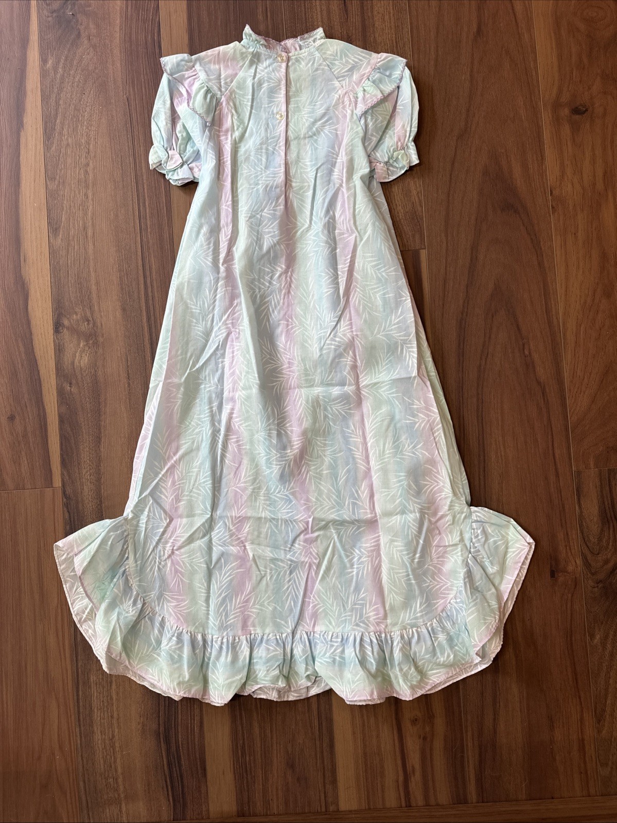 New NOS Vintage 80s Blue Purple Print Ruffled Nightgown Girls Sz 8/10 Kid Duds