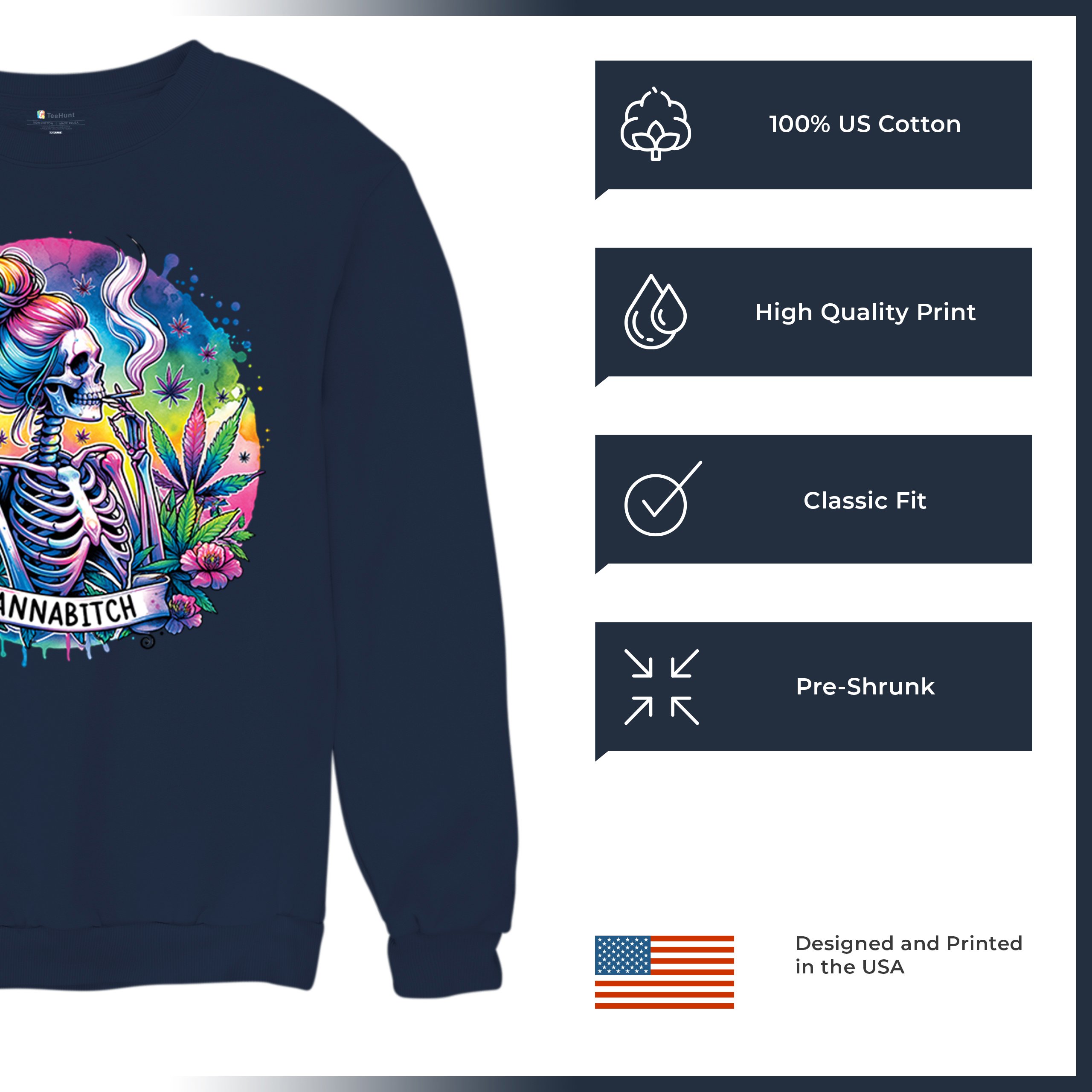 Cannabitch Crewneck Sweatshirt Cute 420 Psychedelic Weed Skeleton Pothead