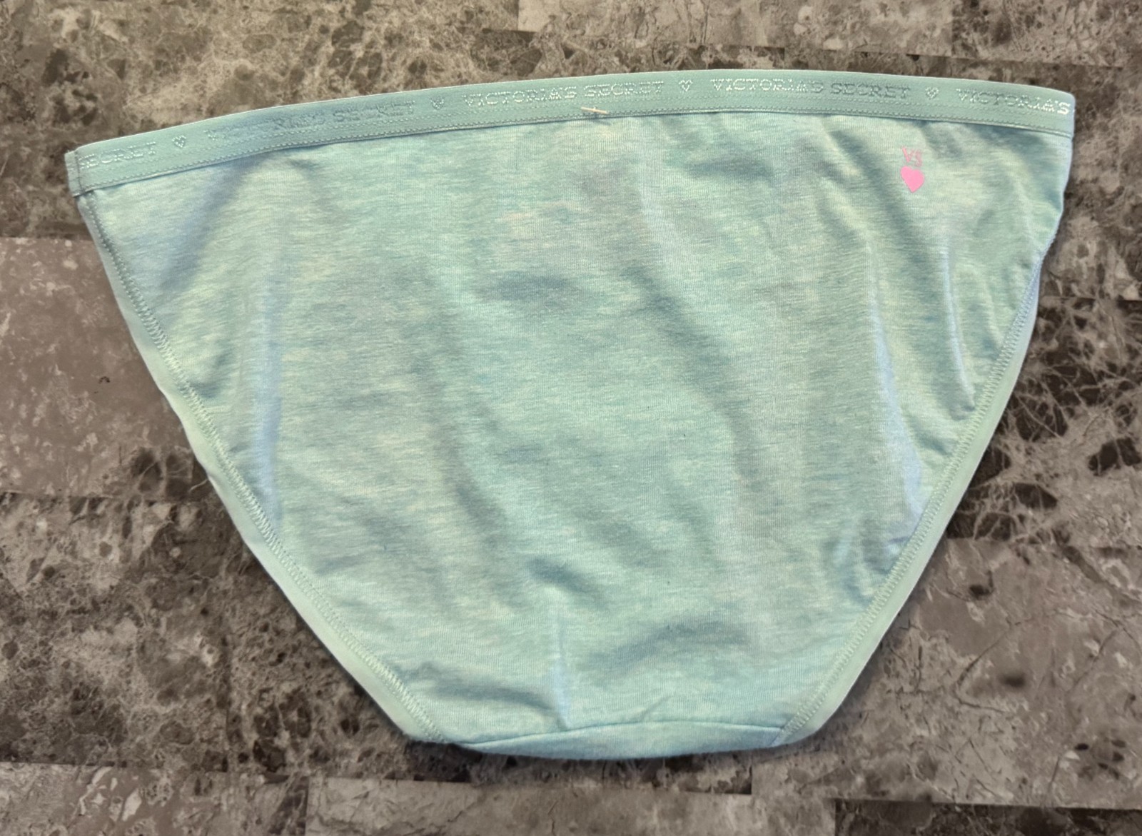 NWT VICTORIA'S SECRET S AQUA PINK HEART VS LOGO BACK RARE STRING BIKINI PANTIES