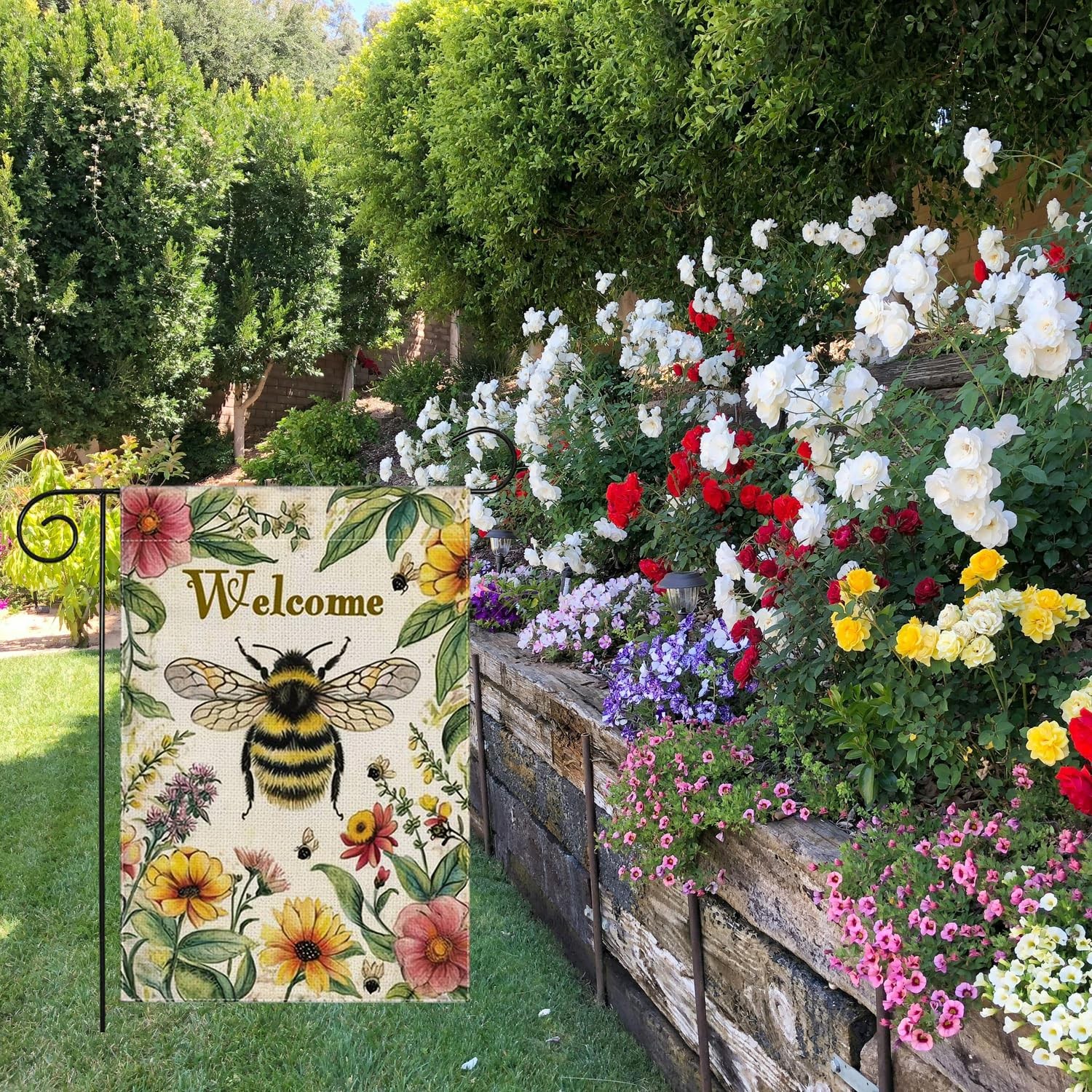 Summer Floral Garden Flag 12x18 Inch Double Sided Colorful Flowers Yard Flag