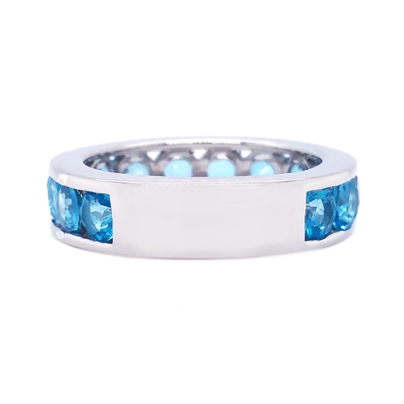 как выглядит 925 Sterling Silver Natural Swiss Blue Topaz Women Half Eternity Band Ring фото