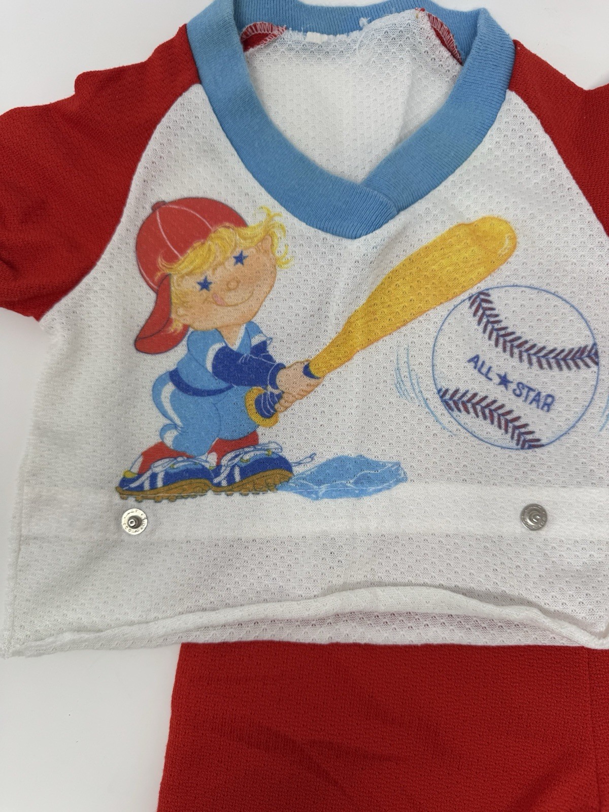 Vintage Carter s Size 1 Year 12M Pajamas Snap 2 Piece All Star Baseball