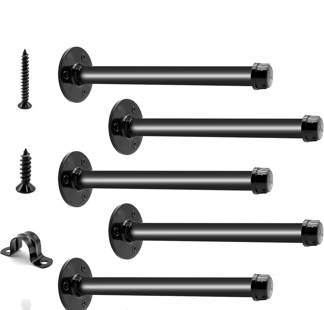 как выглядит 5 Pack Industrial Pipe Shelf Brackets - 12 Inch Black Heavy Duty Wrought Meta... фото