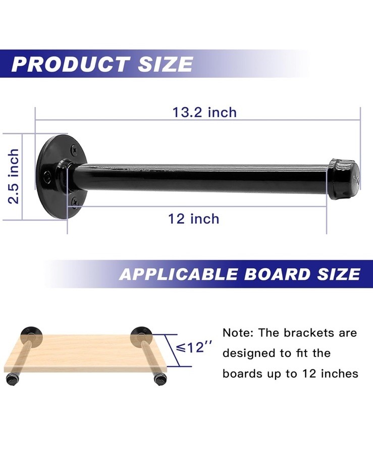 5 Pack Industrial Pipe Shelf Brackets - 12 Inch Black Heavy Duty Wrought Meta...