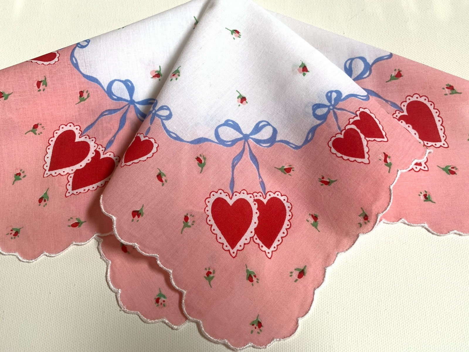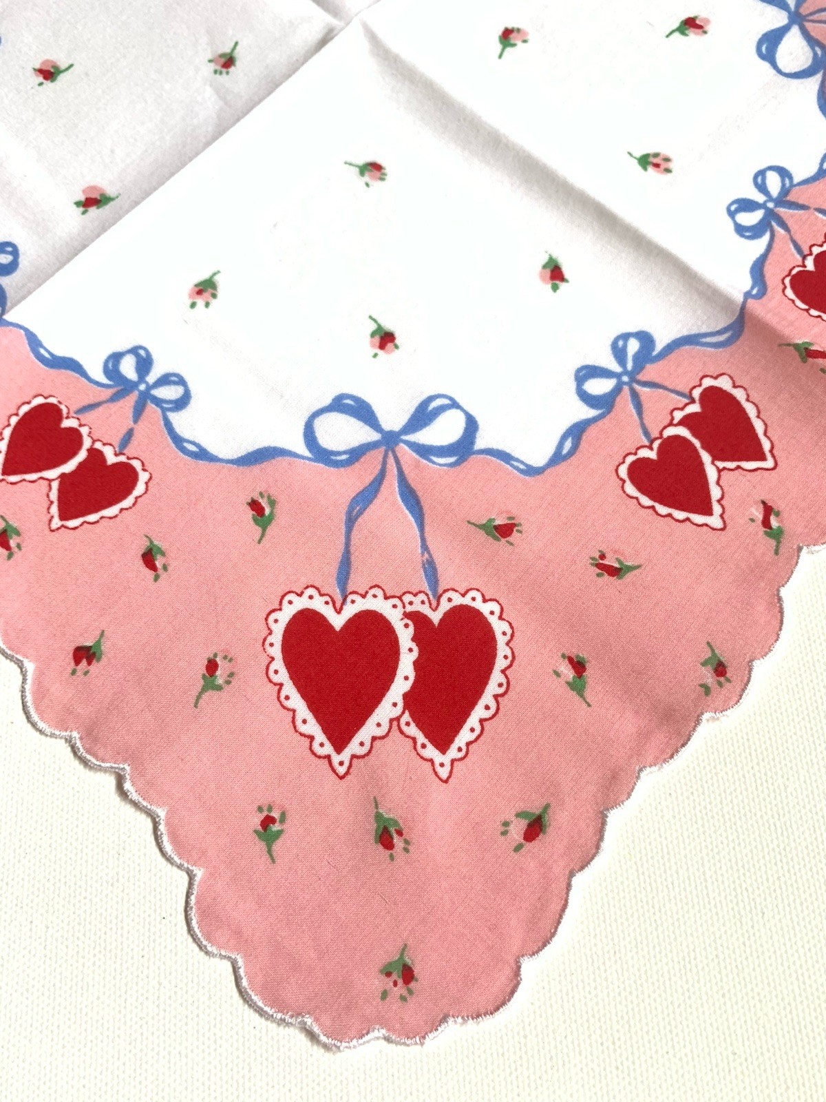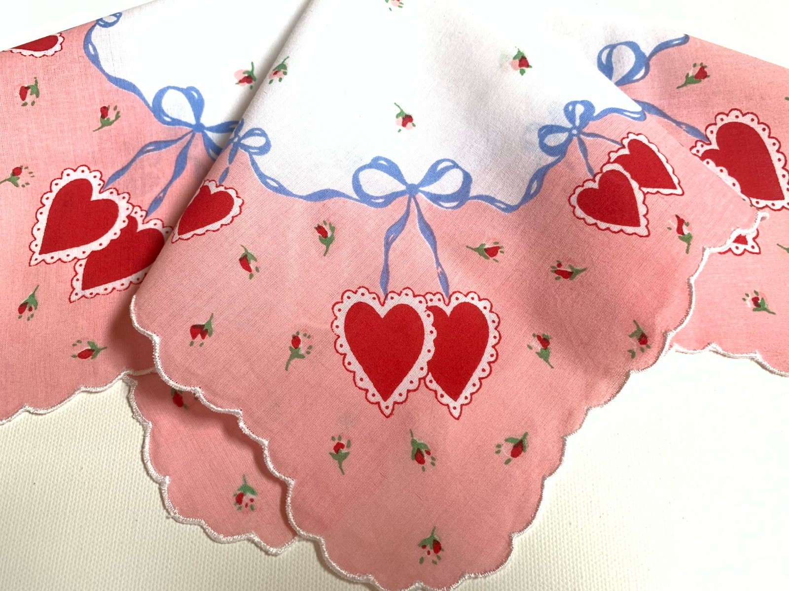как выглядит Darling Red Double Heart Valentine Handkerchief Cotton New LuRay Hankie фото