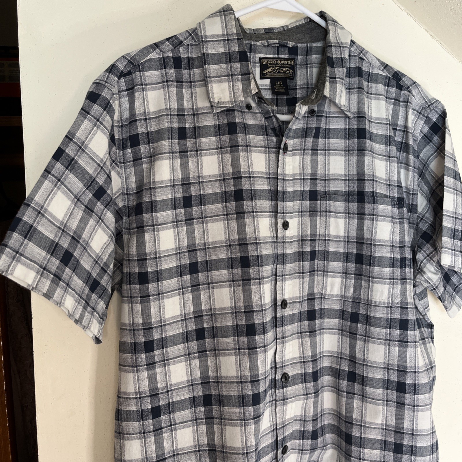 Grizzly Mountain Men's Woven Short Sleeve Button Up Shirt with pocket sm stain
