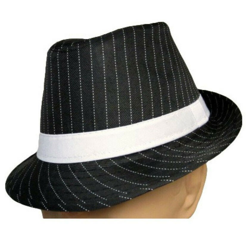 Gangster Hat Adult Fedora Black/White Pinstripe Hatband Mobster Mafia Capone