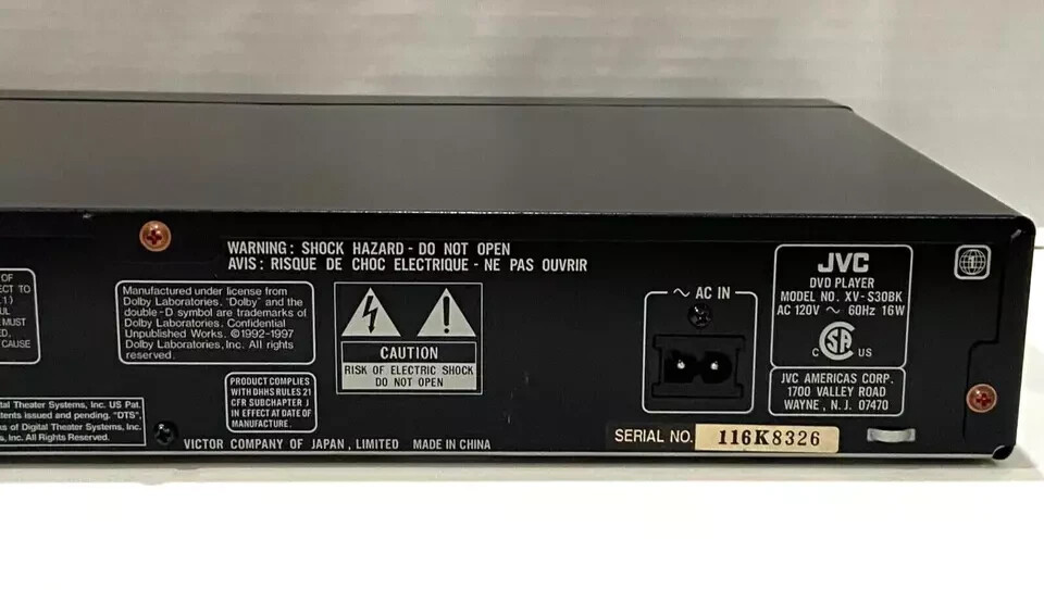 Vintage JVC XV-S30BK DVD/CD Player w/Audio-Video Cable and Power Cord, Tested