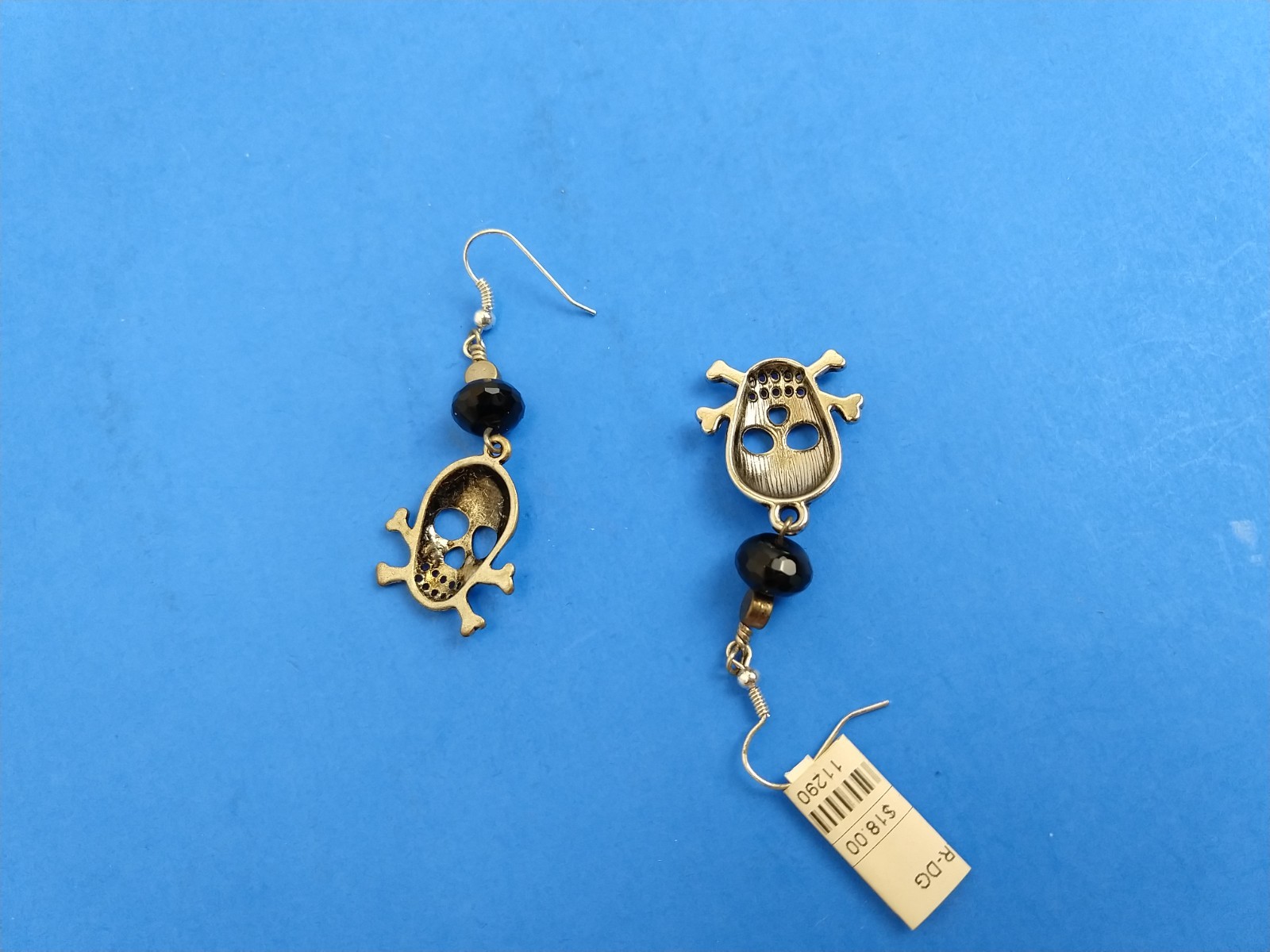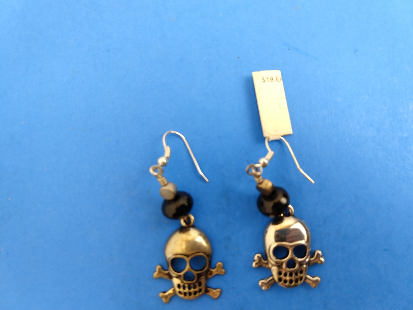 как выглядит Silver Tone Black Charm Candy Skull Earrings Halloween Day of the Dead фото