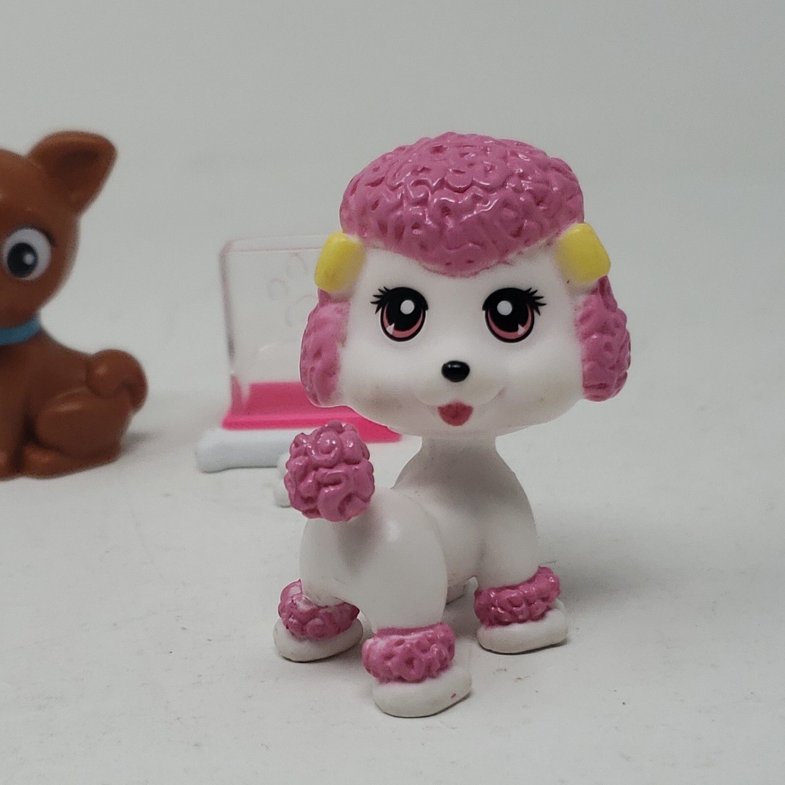 как выглядит Barbie Doll Pet Puppy Dog White Poodle Pink Hair Brown Blue Collar Bones Lot 2 фото