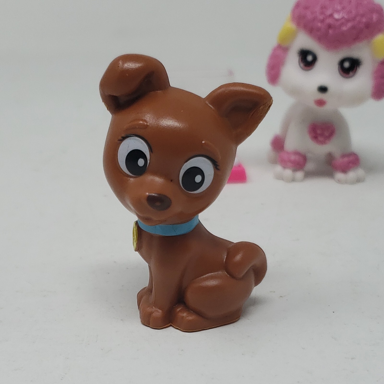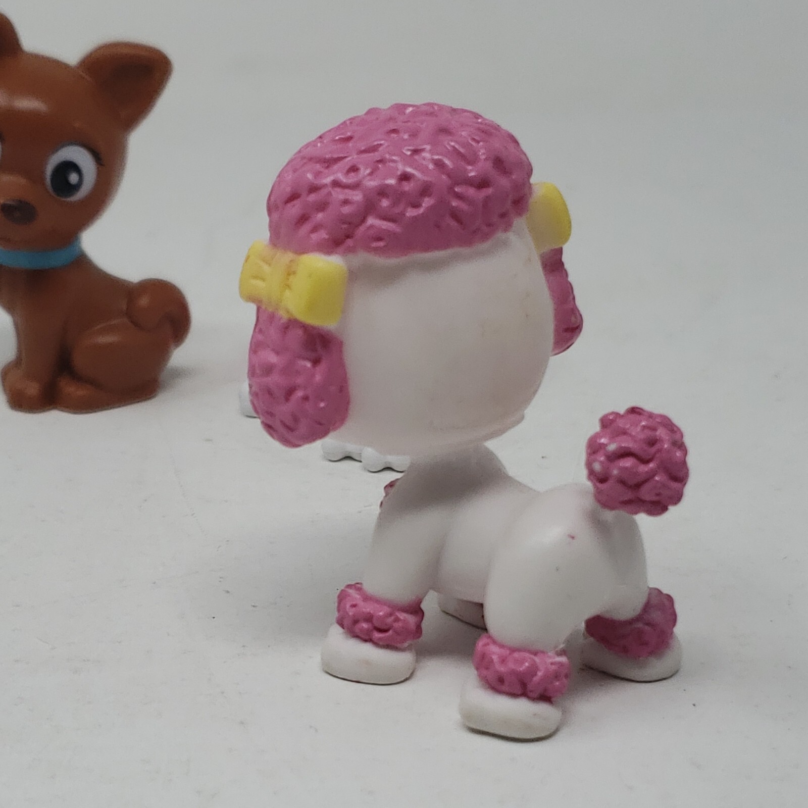 Barbie Doll Pet Puppy Dog White Poodle Pink Hair Brown Blue Collar Bones Lot 2