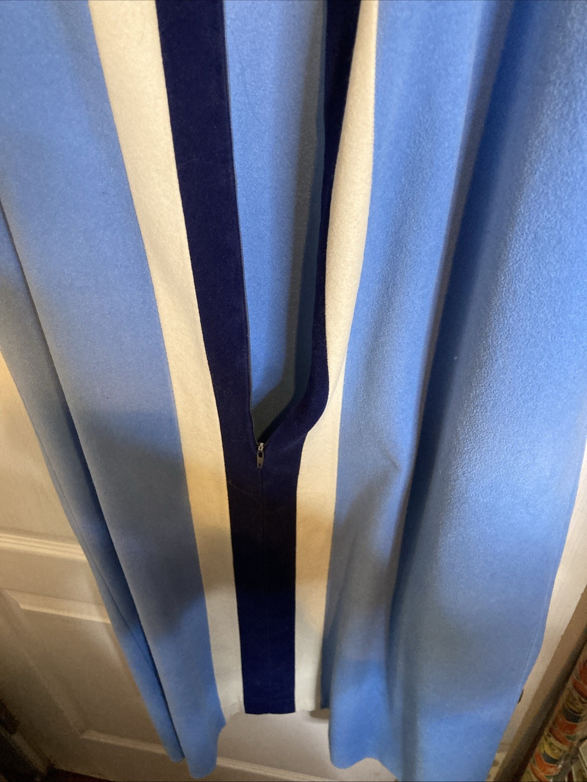 Vanity Fair Long Velour Robe House Coat Blue Colorblock Zip USA Retro Vtg 14