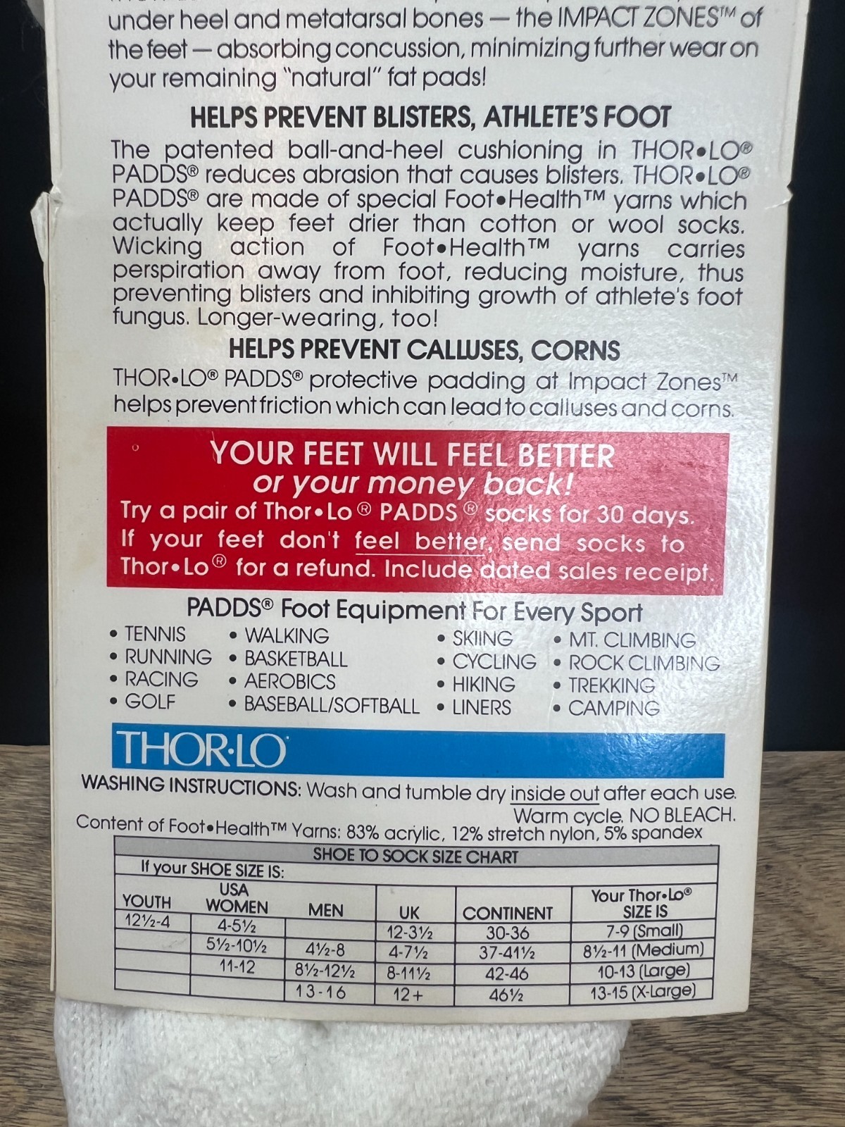 Vintage 90s Thorlo Padds WMX-11 White Crew Walking Socks 8 1/2-11