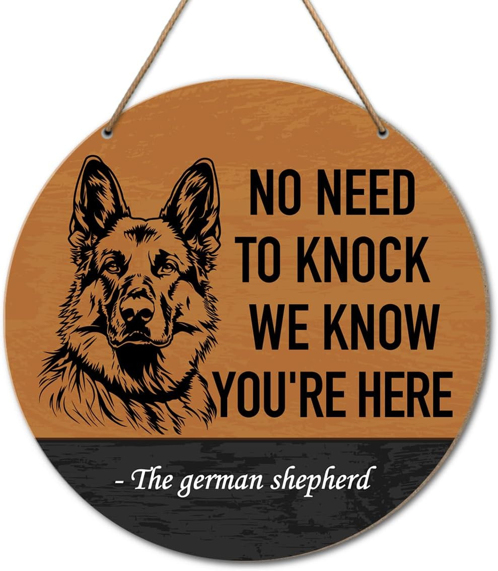 German Shepherd Welcome Sign for Front Door Decor, Dog Rustic Round Wood Hang...