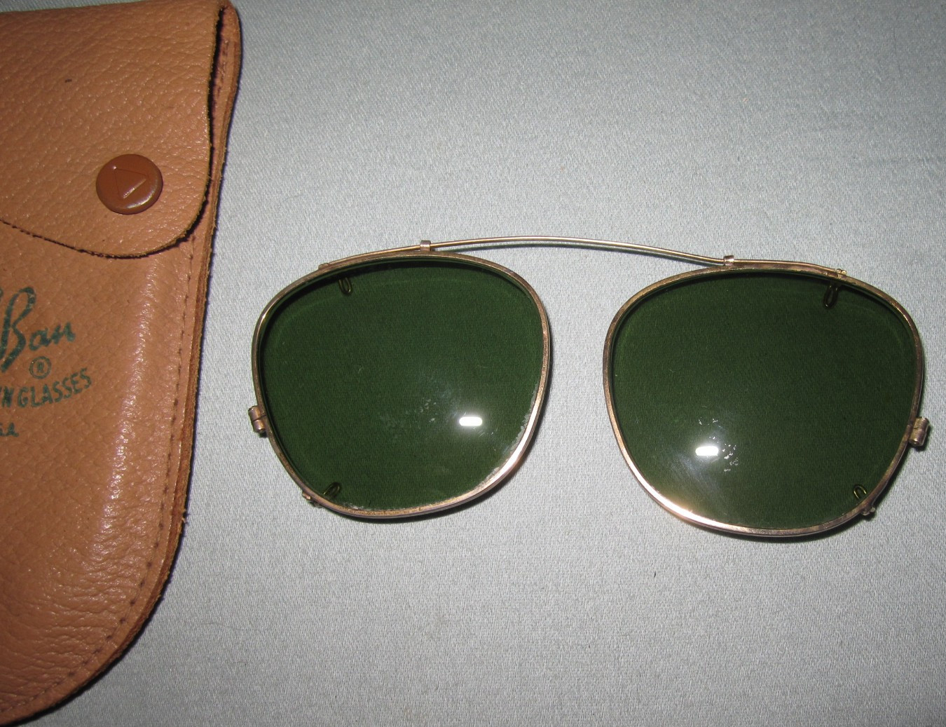 как выглядит Vtg Ray-Ban Bausch Lomb gold rim clip on sunglasses w tan leather case фото