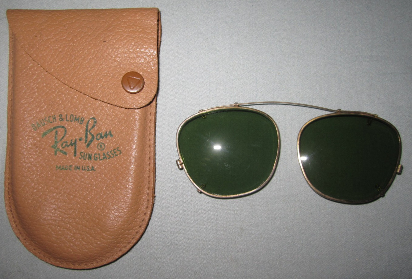 Vtg Ray-Ban Bausch Lomb gold rim clip on sunglasses w tan leather case