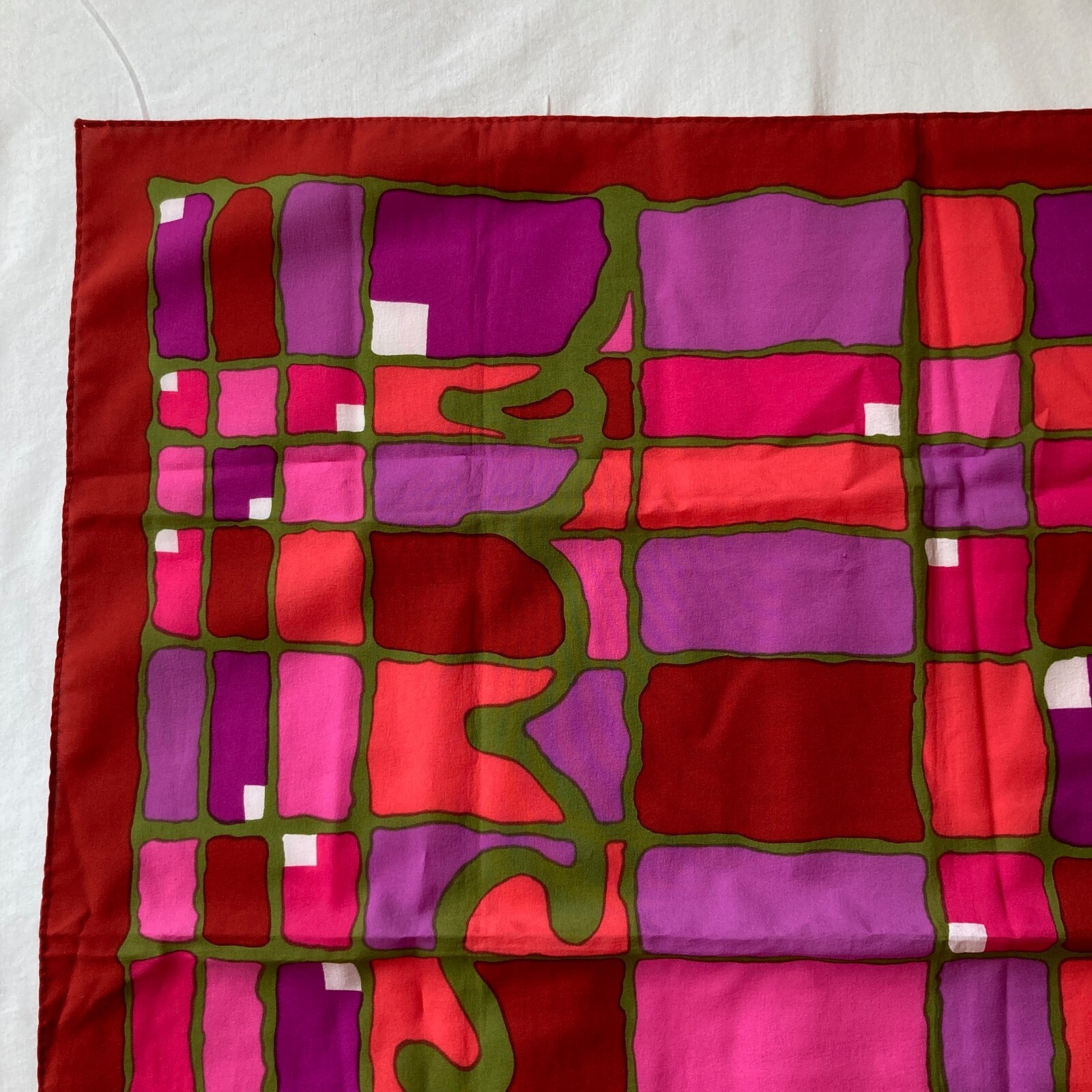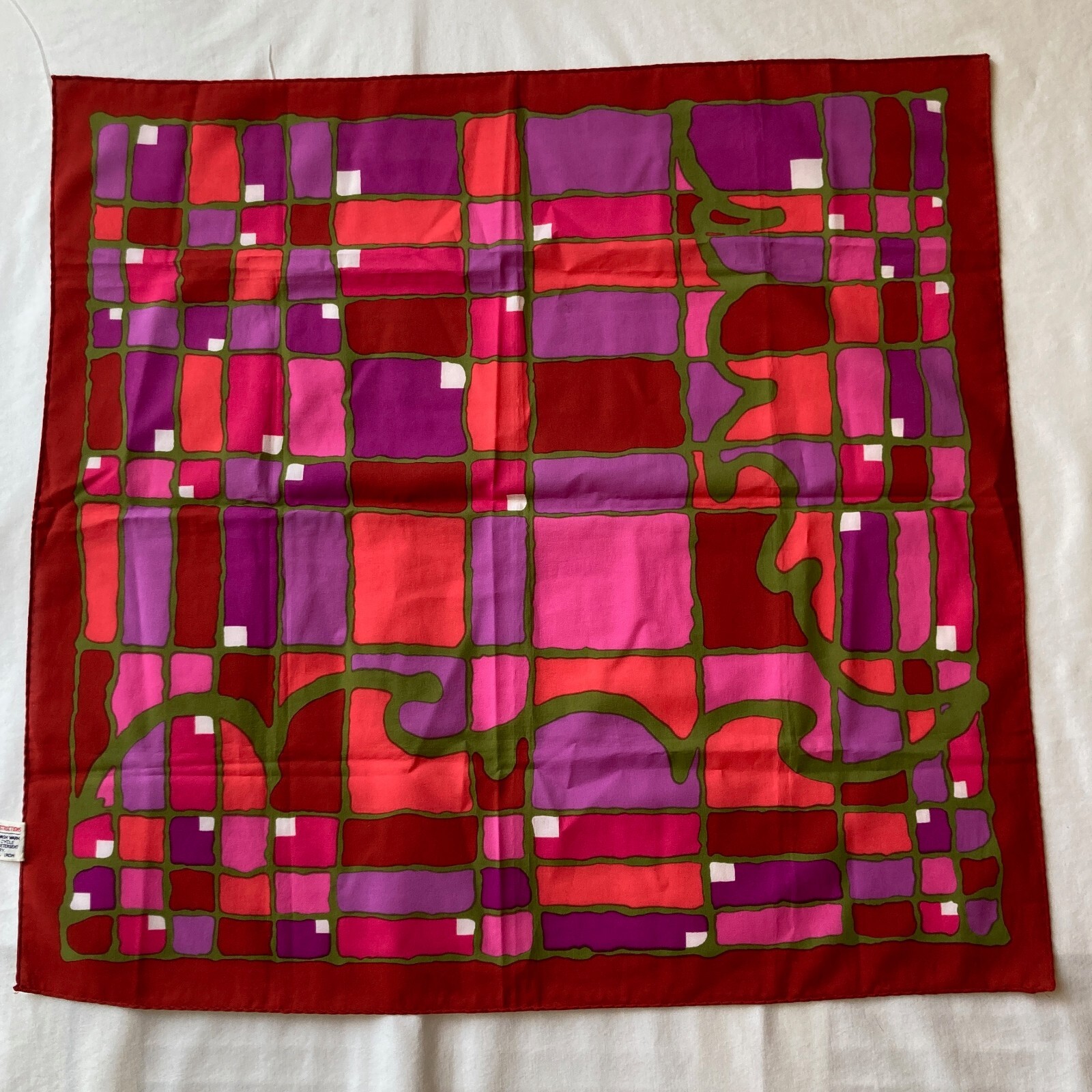 Vintage Retro Geometric Square Polyester Scarf Pink Purple Gold Red Green Japan