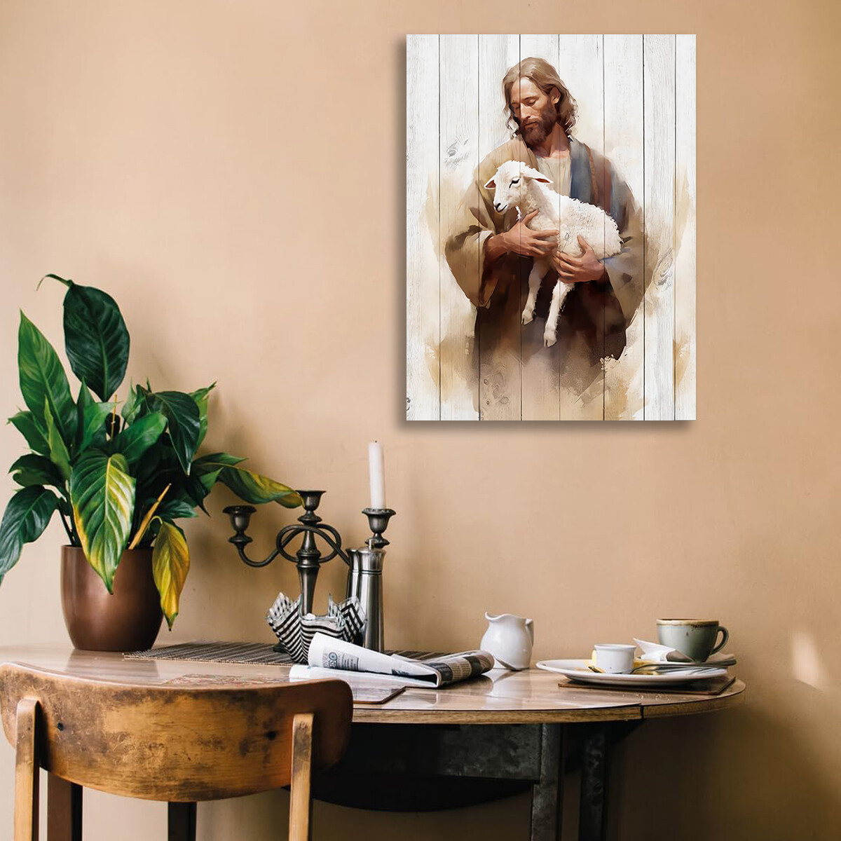 Christian Wall Art Jesus Holding Sheep Canvas Art Print Religious Wall Decor