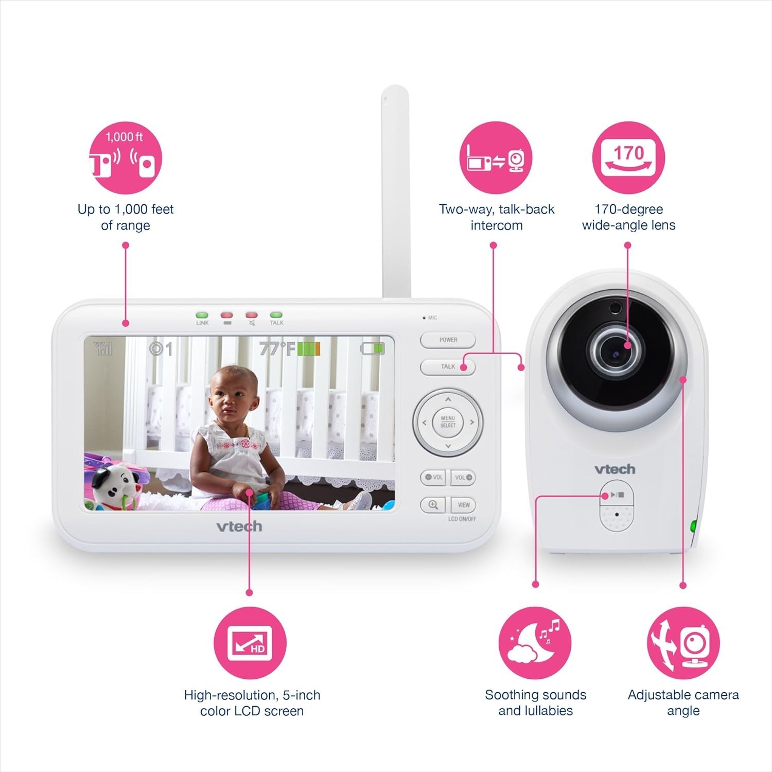 VTech Video Baby Monitor, Smart WiFi Access, Pan Tilt, 2-Way Talk, Sounds