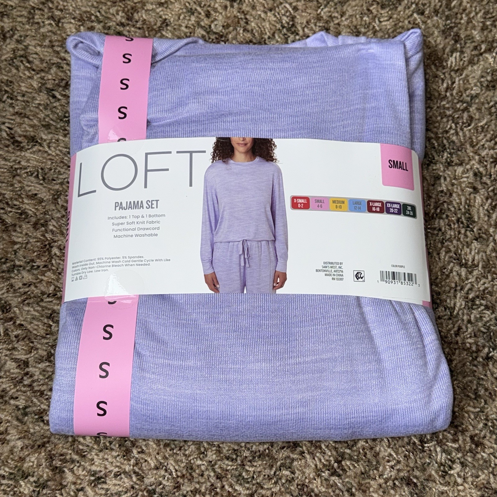 Loft Women's Soft Knit Long Sleeve Top Pant Henley Sleep Set Purple Small