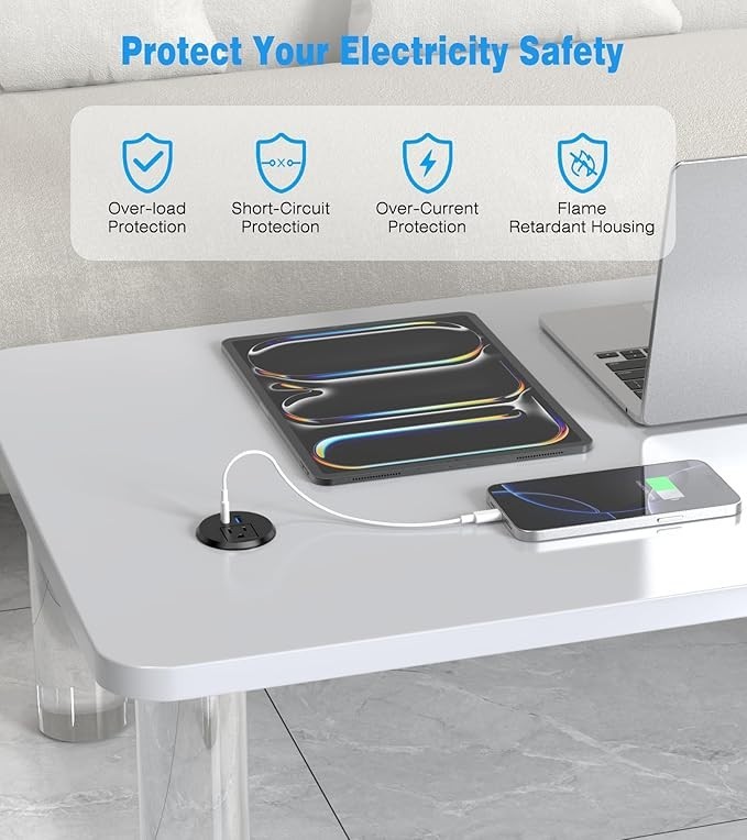 NEW Desk Power Grommet Outlet, 2 inch Recessed Outlet w/ 20W USB-C Fast Charge