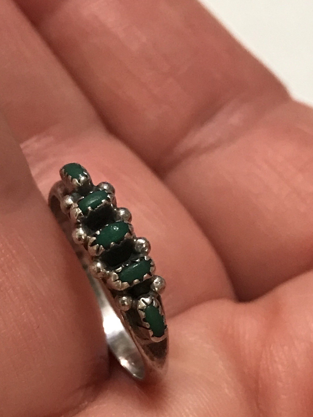 как выглядит Vintage Native American Sterling Silver Ring With Green Turquoise. Size 5.4 фото