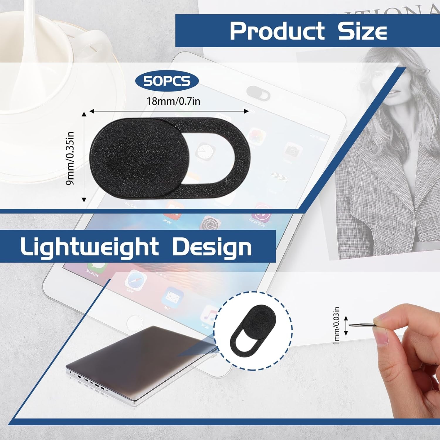 50 Pcs Black Ultra-Thin Webcam Cover Slide, Laptop Camera Privacy Protectors
