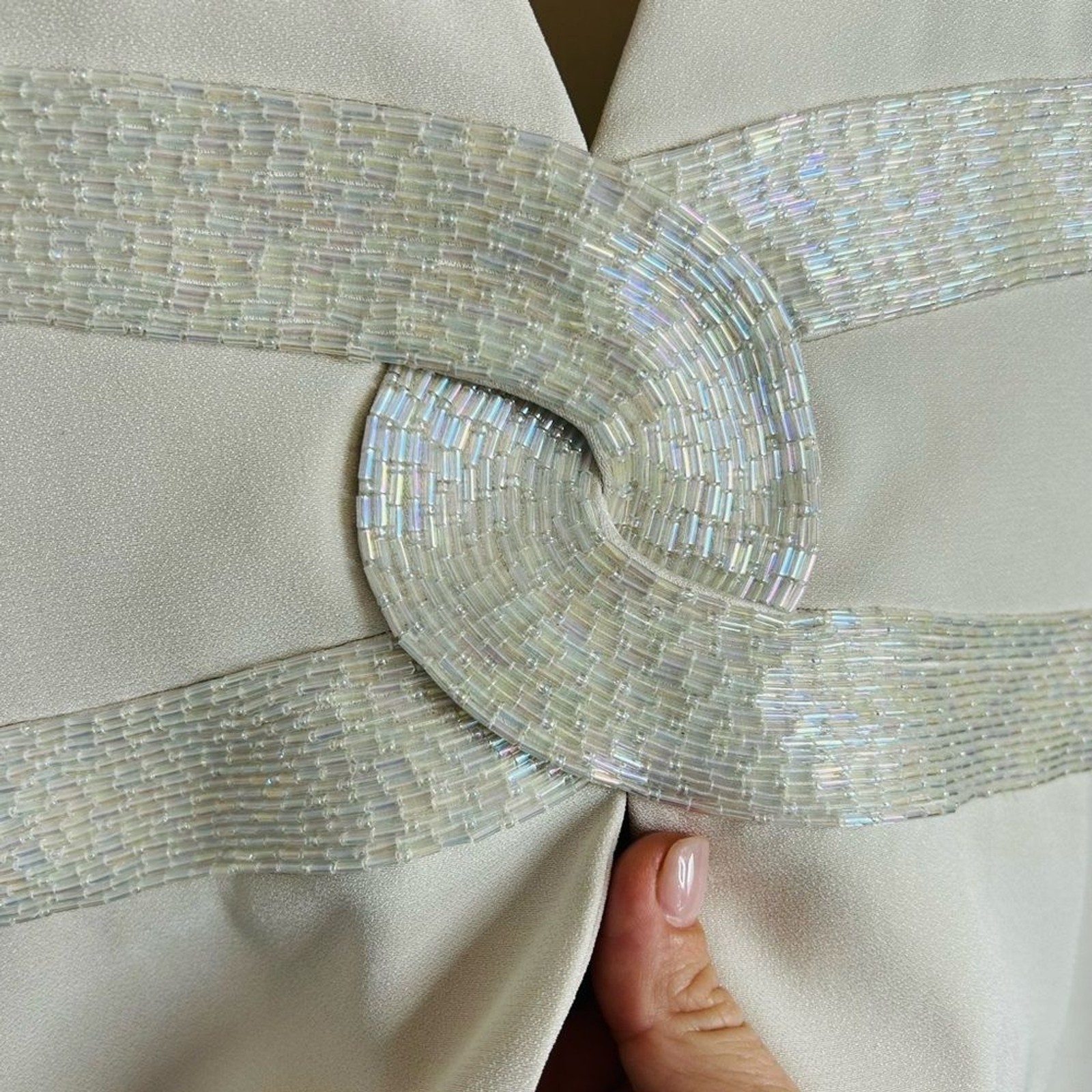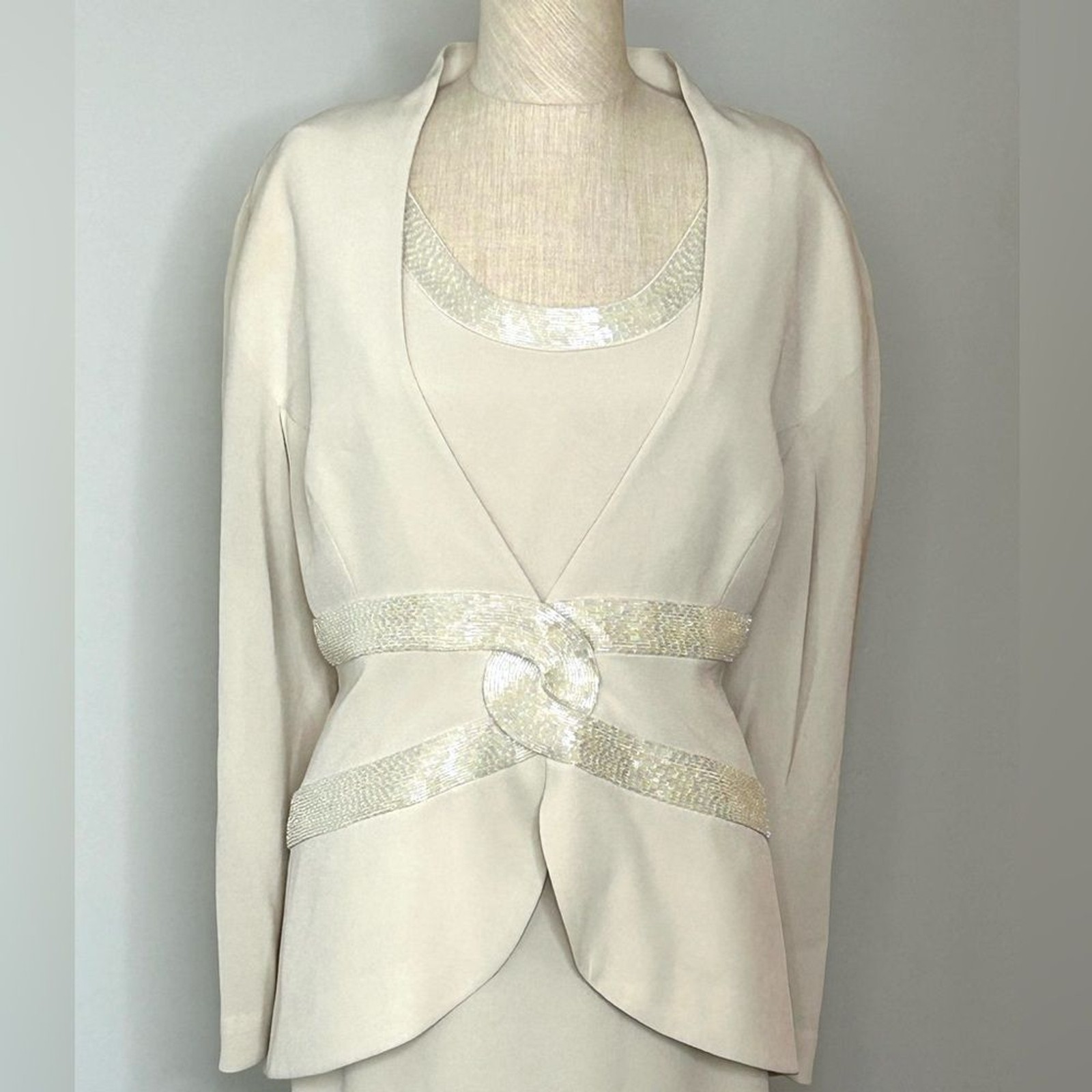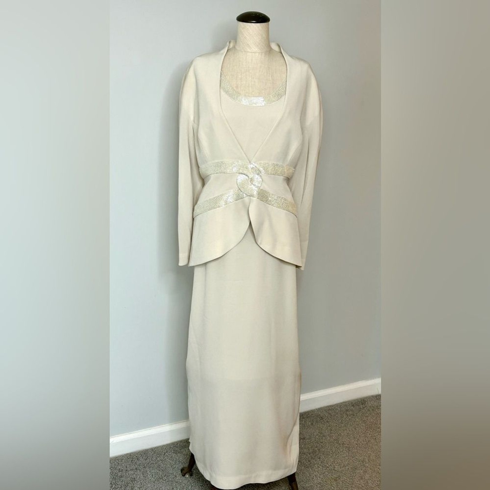 как выглядит Vintage Daymor Couture Cream Beaded Formal Gown with Attached Jacket size 18 фото