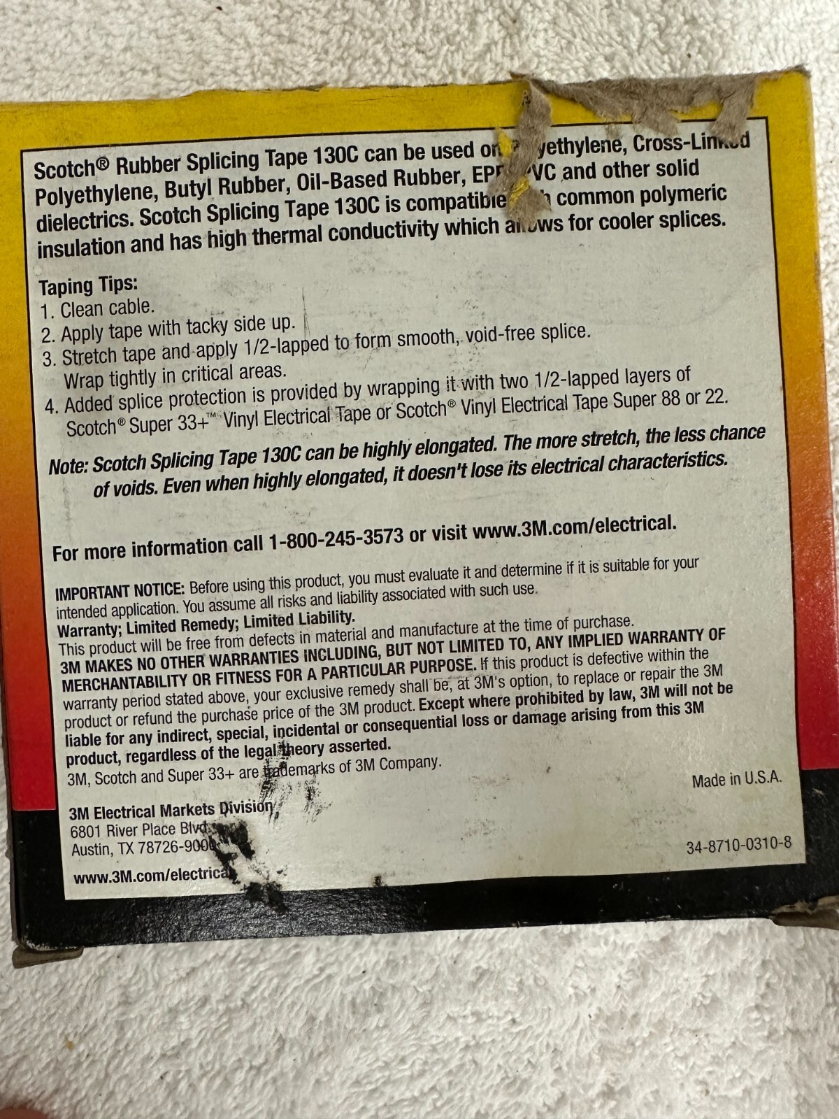 Scotch Linerless Rubber Splicing 130C 3/4 in x 30 ft. Black Electrical Tape