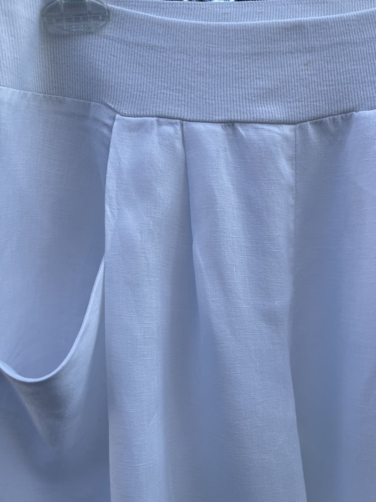как выглядит EILEEN FISHER ORGANIC LINEN ANKLE LANTERN PANTS WHITE SP RIBBED WAIST POCKETS фото