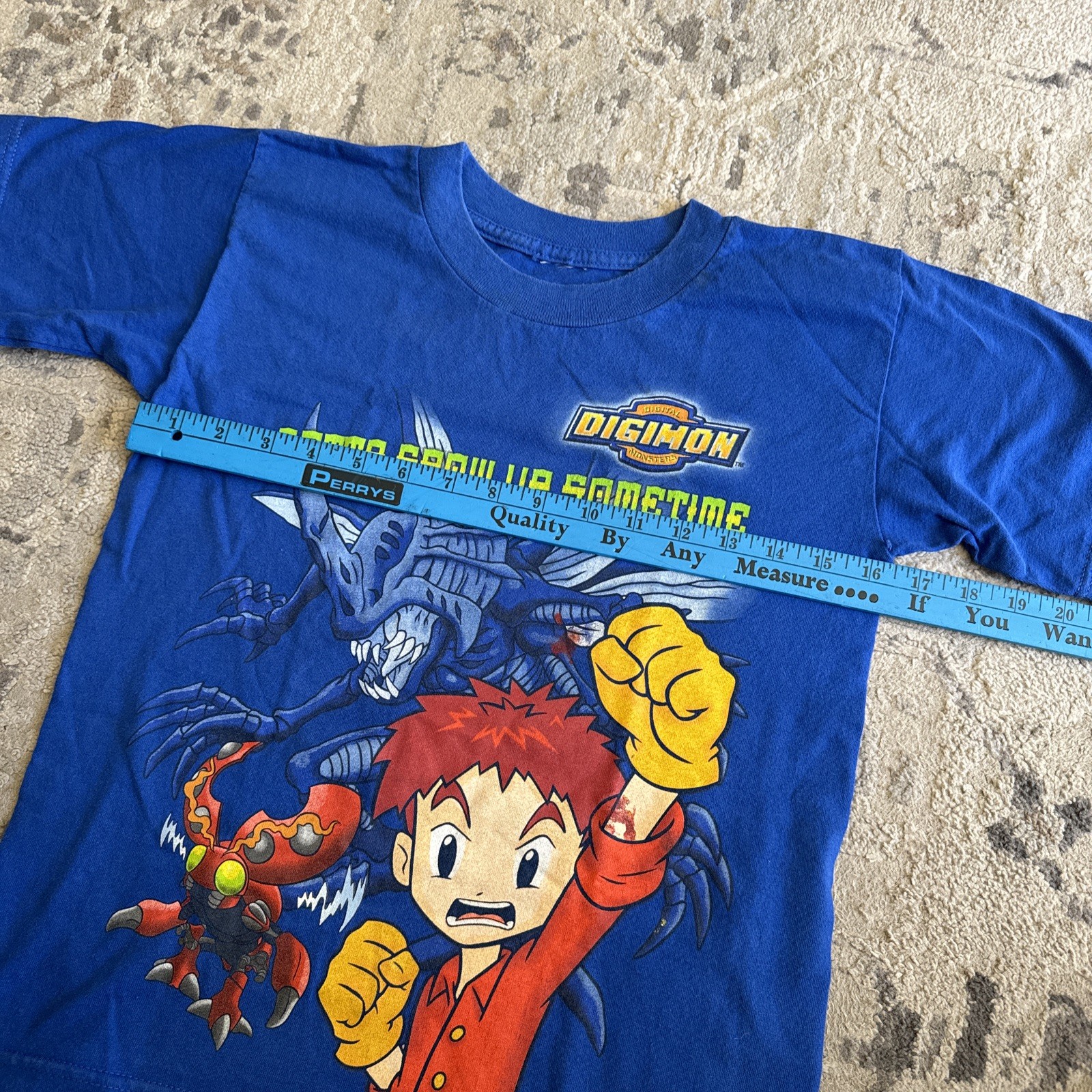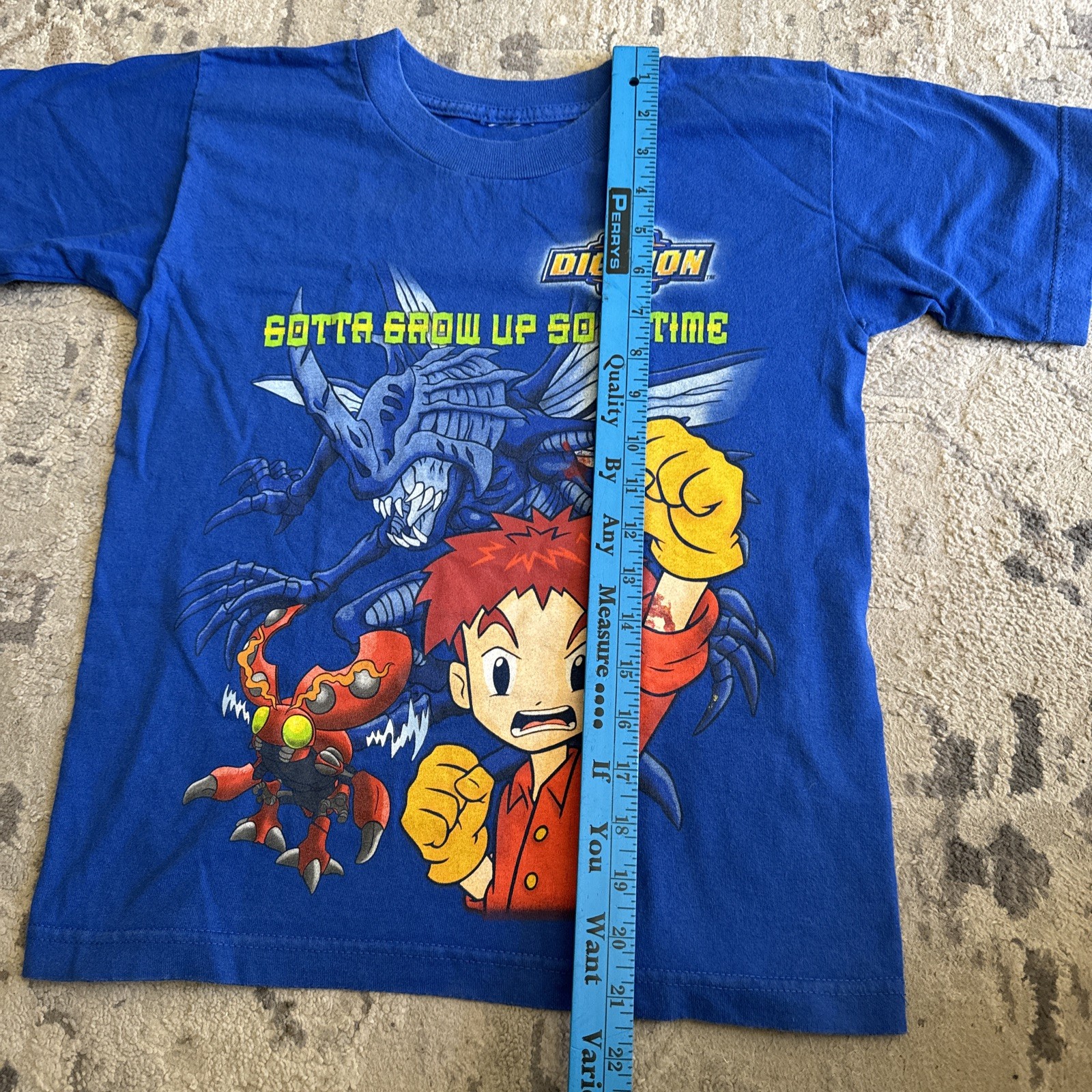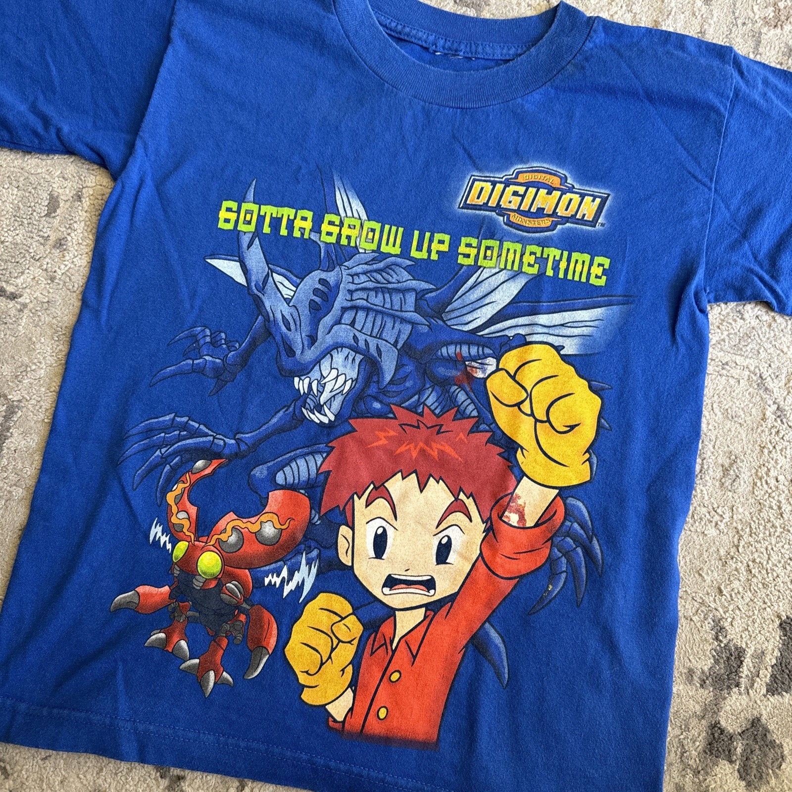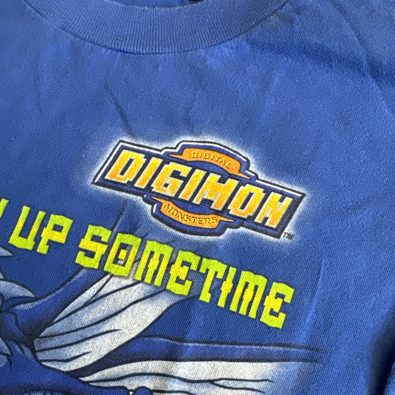 как выглядит VTG 1999 Digimon Graphic Shirt Gotta Grow Up Sometime Blue Sz Youth Medium фото