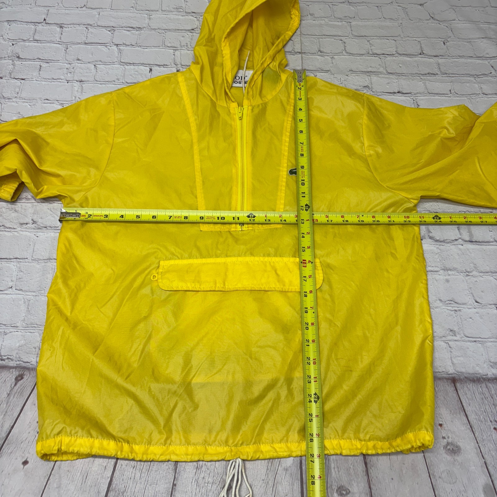 как выглядит Vintage Izod Lacoste Men Medium Yellow Hooded Pullover Windbreaker Jacket D025 1 фото