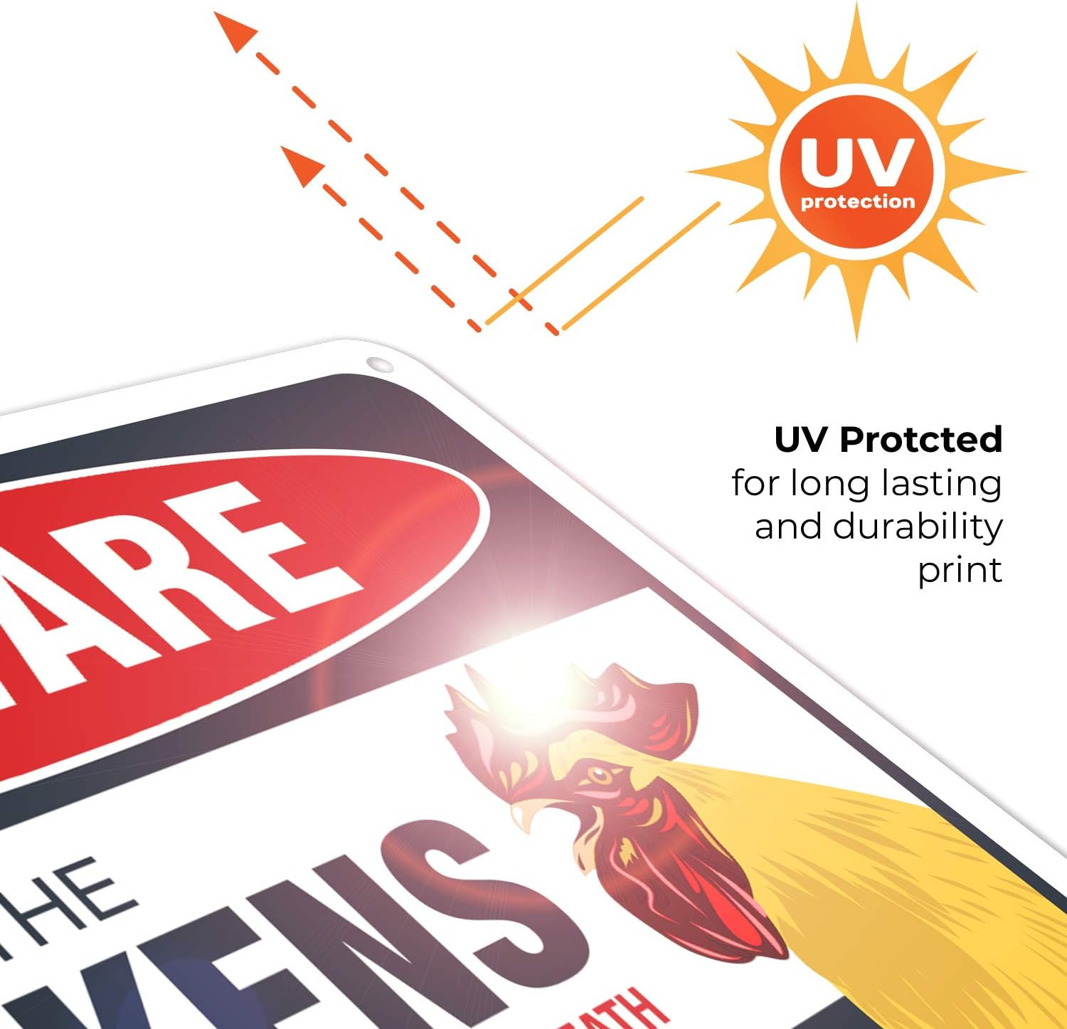 • Beware Of Chicken Sign, Chicken Coop Decor Gifts For Chicken Lovers, 10x7 Rus...