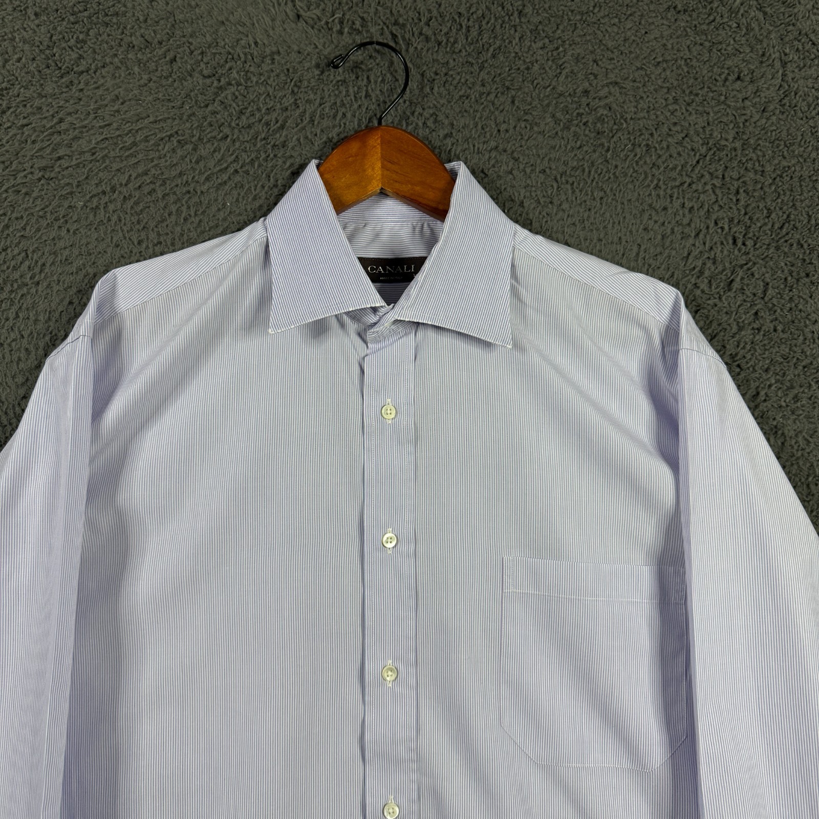 Canali Shirt Mens 16.5 Purple Striped Dress Shirt Spread Collar Made in Italy