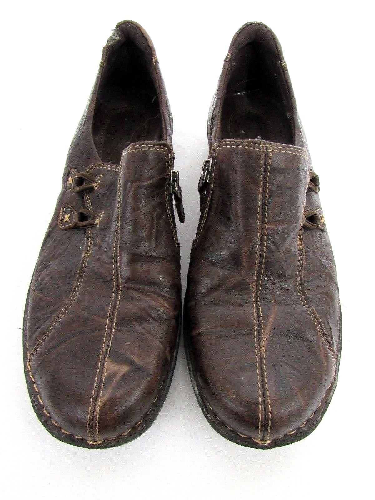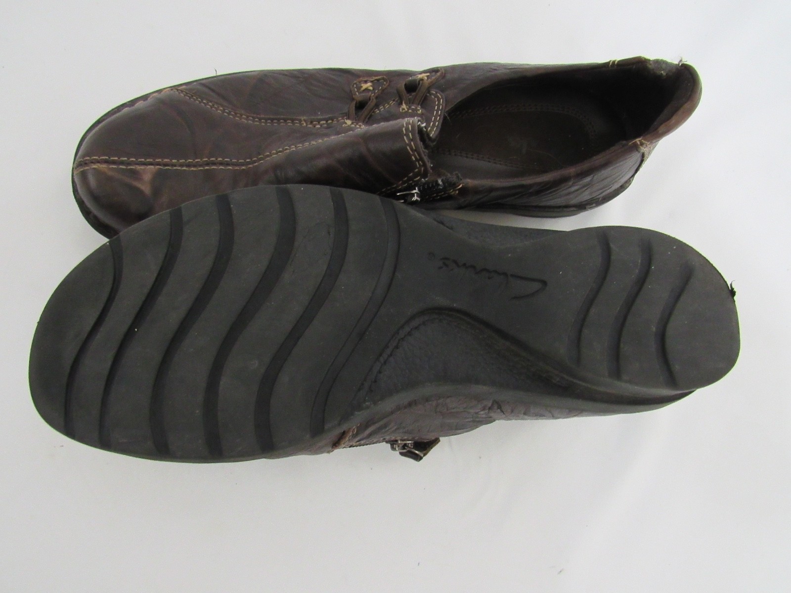 как выглядит CLARKS COMFORT Slip On Brown Leather Zip Fasten Loafer Womens Shoes Size 8 M фото