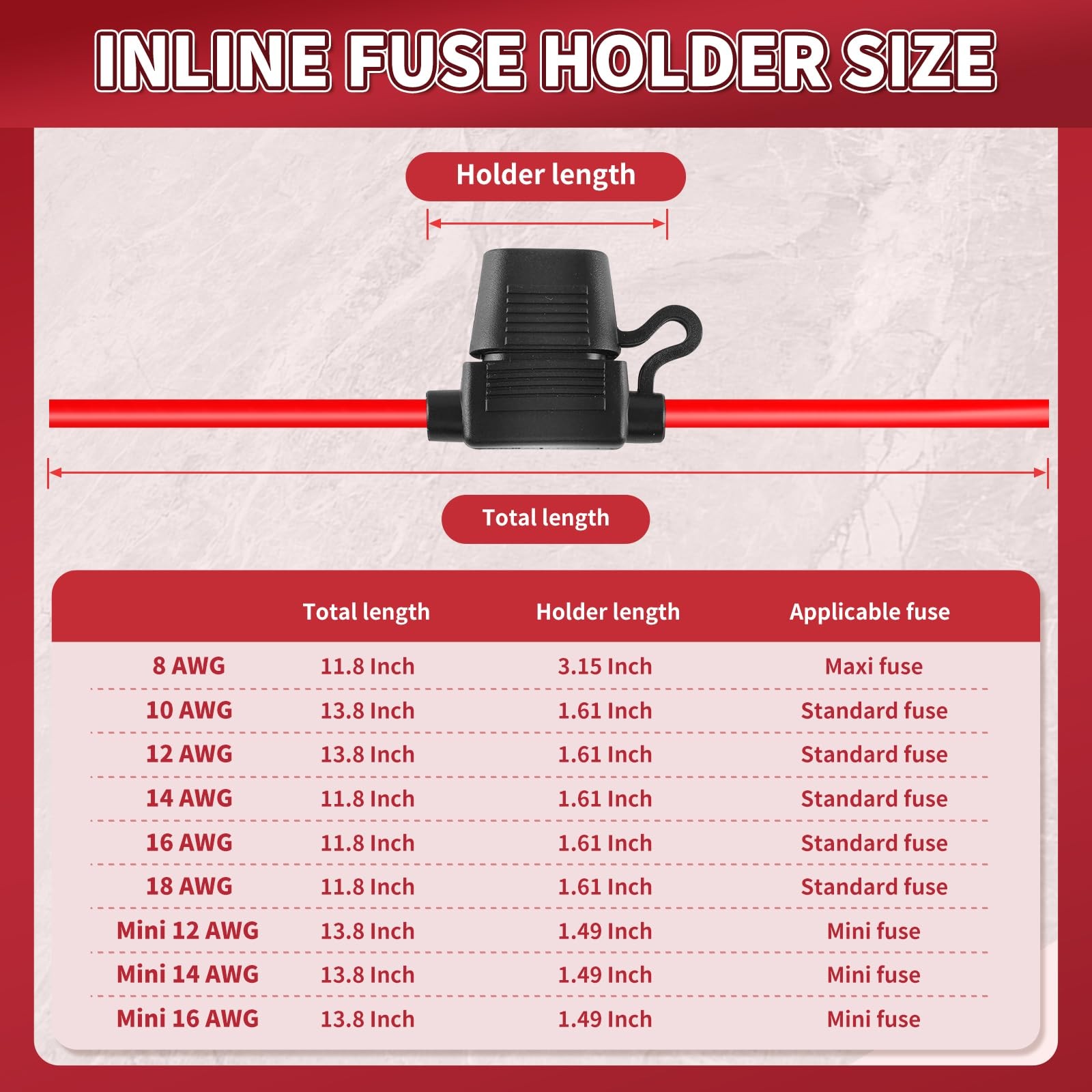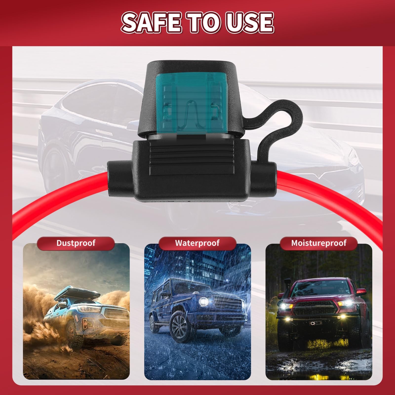 Waterproof 12V Inline Fuse Holder 8 AWG, 2 Pack with 80A Maxi Car Fuses