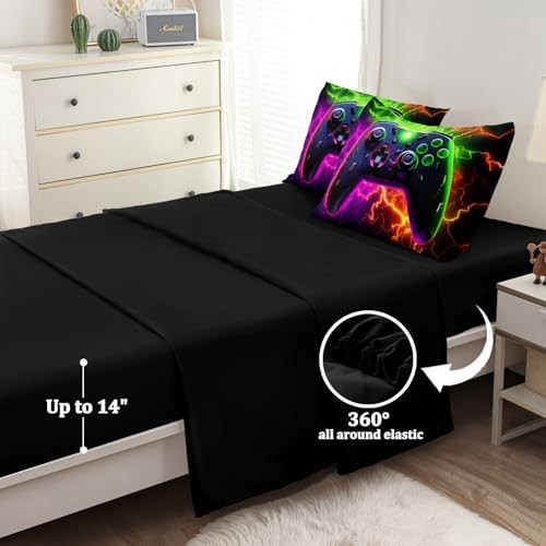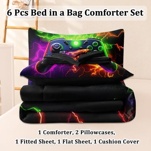 6 Pcs Full Size Bedding Set, Gaming Comforter Sets for Boys Full-6pcs Purple
