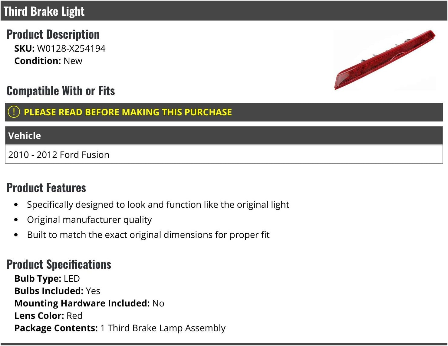 • 3rd Third Brake Light LED Lens Compatible with 2010-2012 Ford Fusion