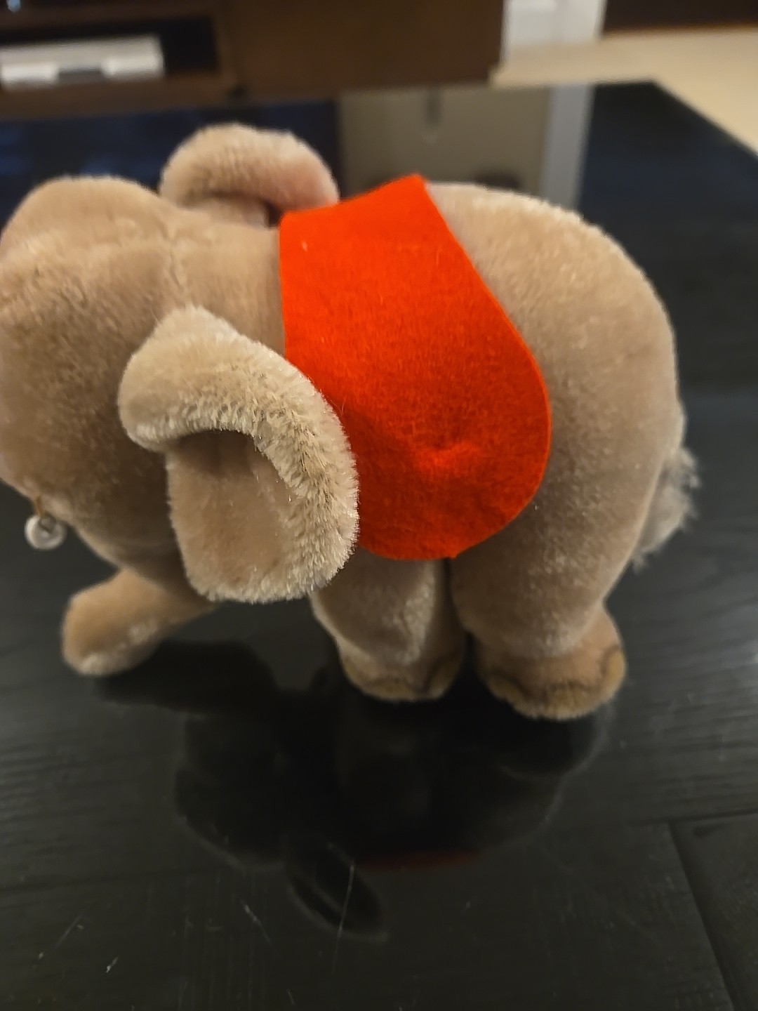 как выглядит Vintage 1960s Steiff Mohair Elephant Red Felt Saddle and Bells 1Eye Loose фото