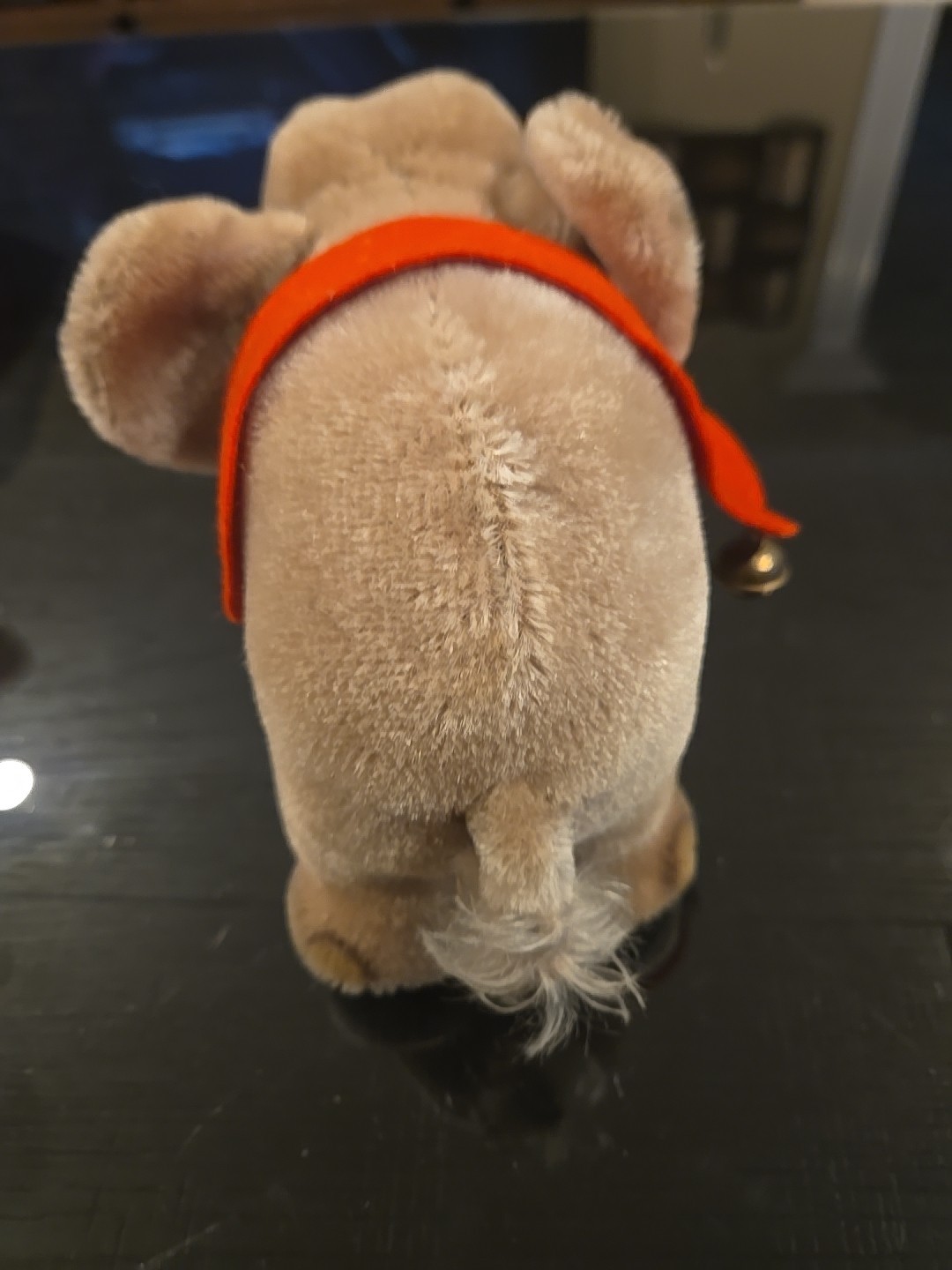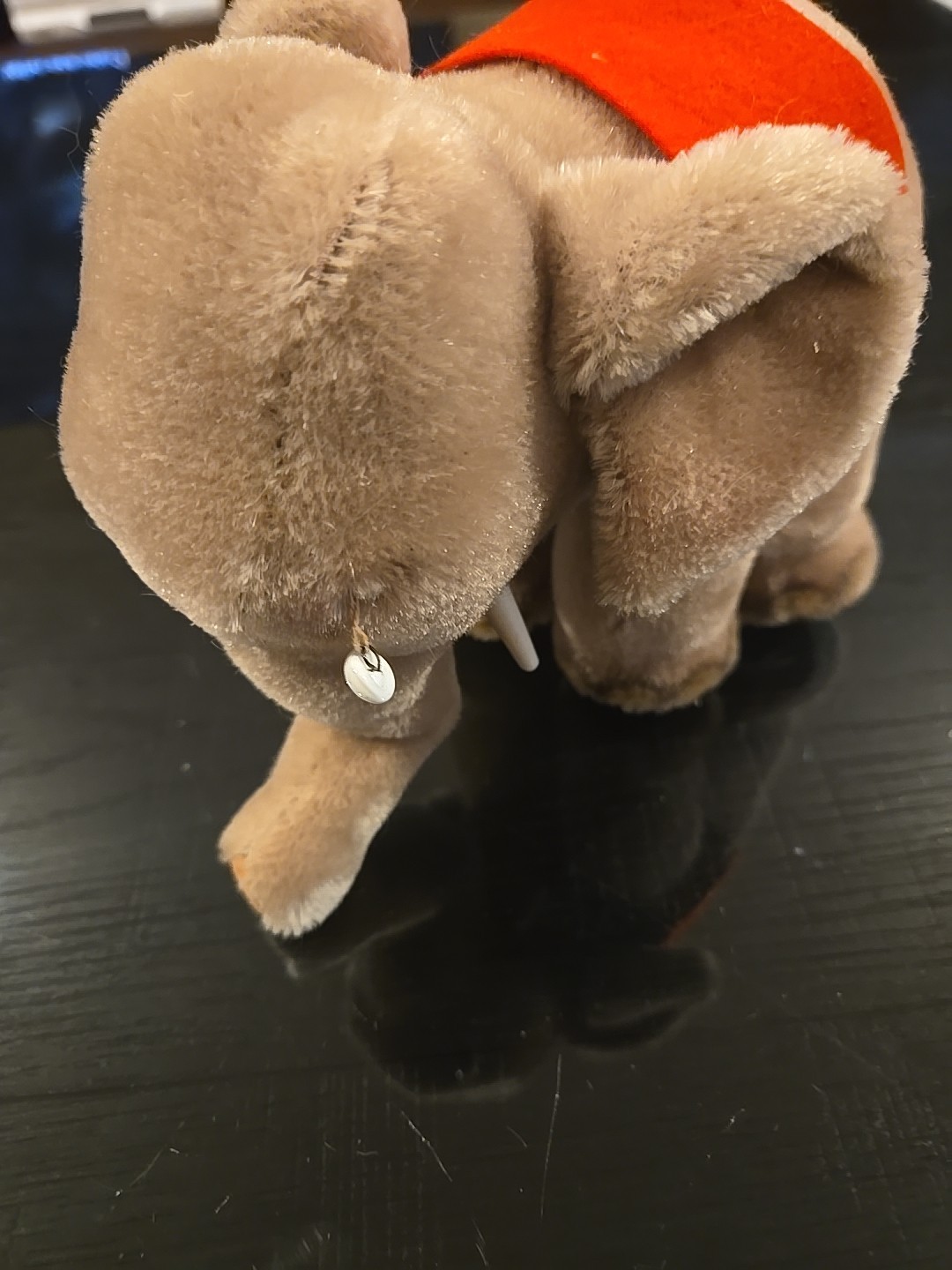 Vintage 1960's Steiff Mohair Elephant Red Felt Saddle and Bells 1Eye Loose