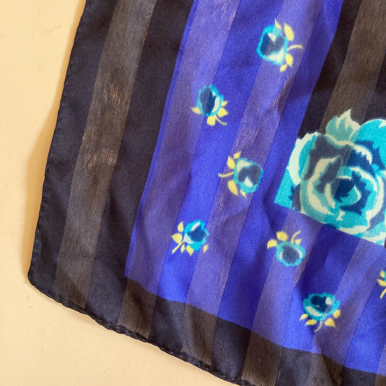 Vintage Blue Roses Rose Flower Scarf Floral 20 X 20 Made in Italy Chiffon Green