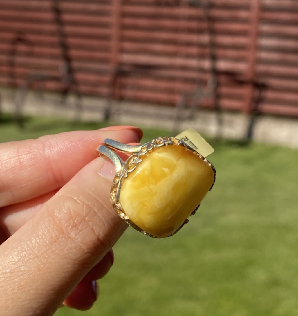 как выглядит Authentic Baltic Yellow Amber Silver 925 14K Gold Plated Adjustable Ring фото