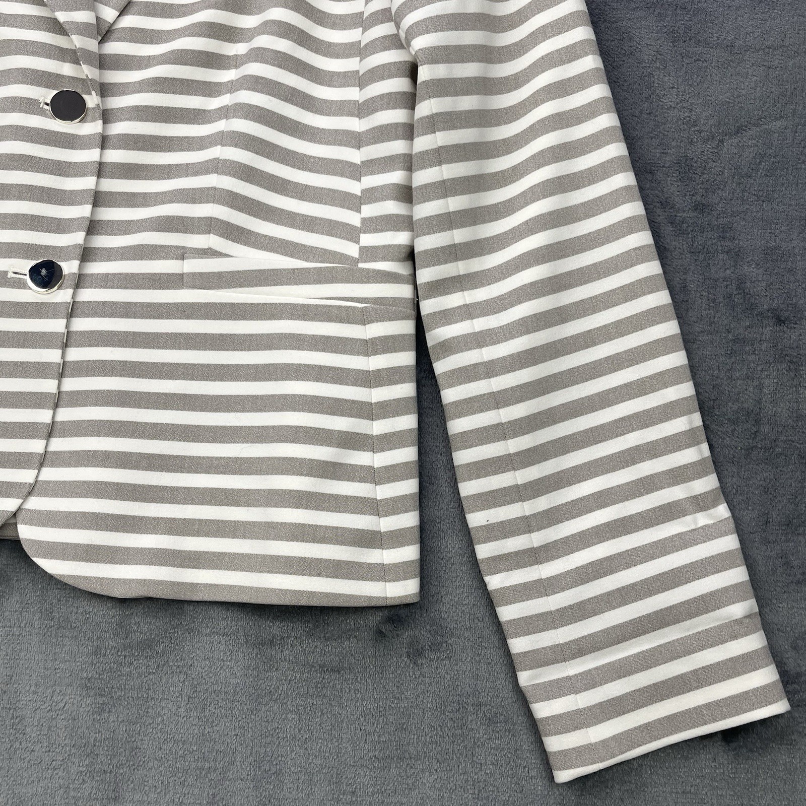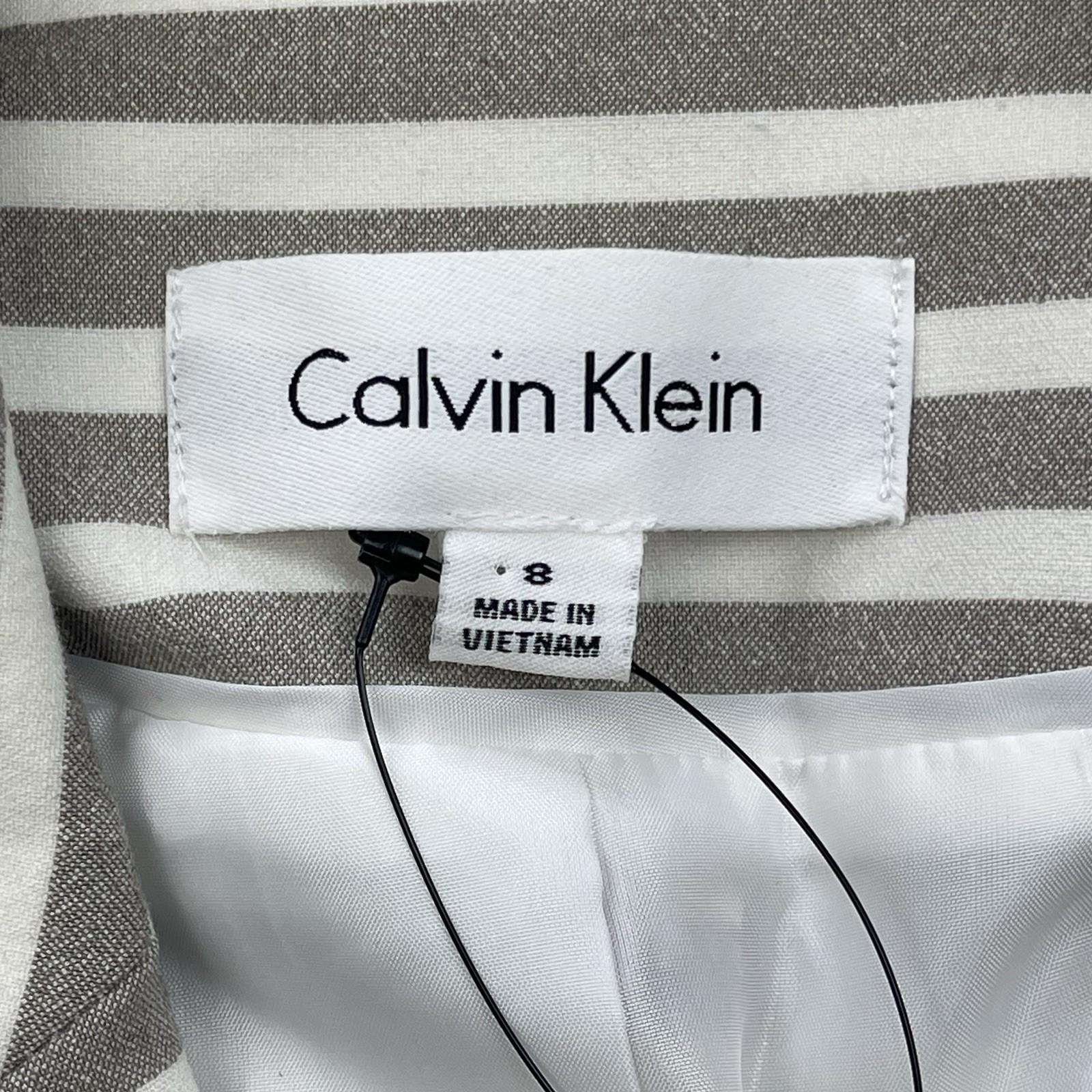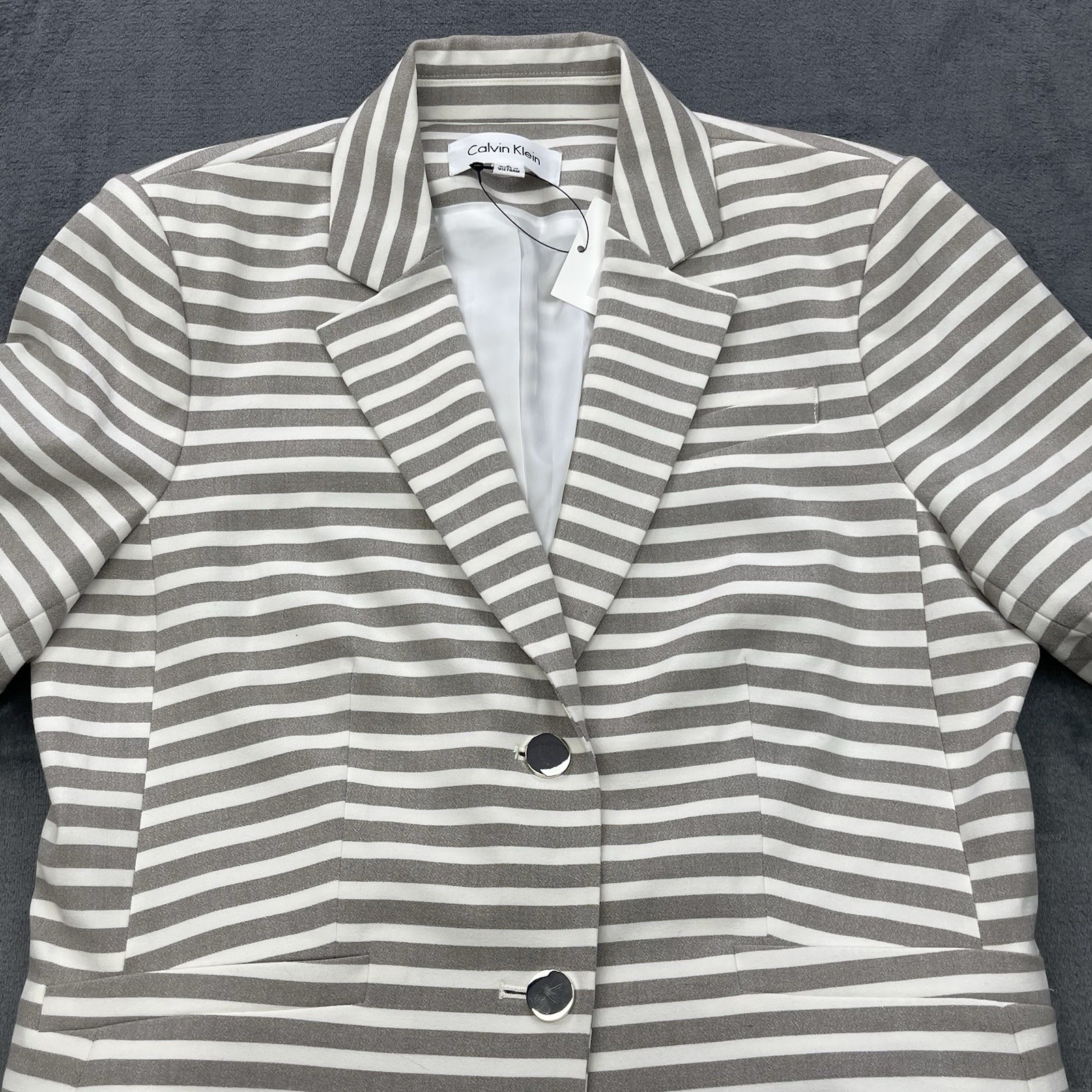 как выглядит Calvin Klein Womens Blazer White khaki Striped Size 8 Two Button Jacket NWT фото