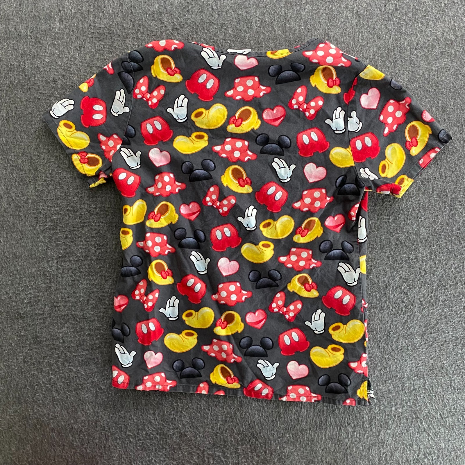 как выглядит Disney Scrub Top Womens Small Colorful Short Sleeve Minnie Mouse All over Print фото