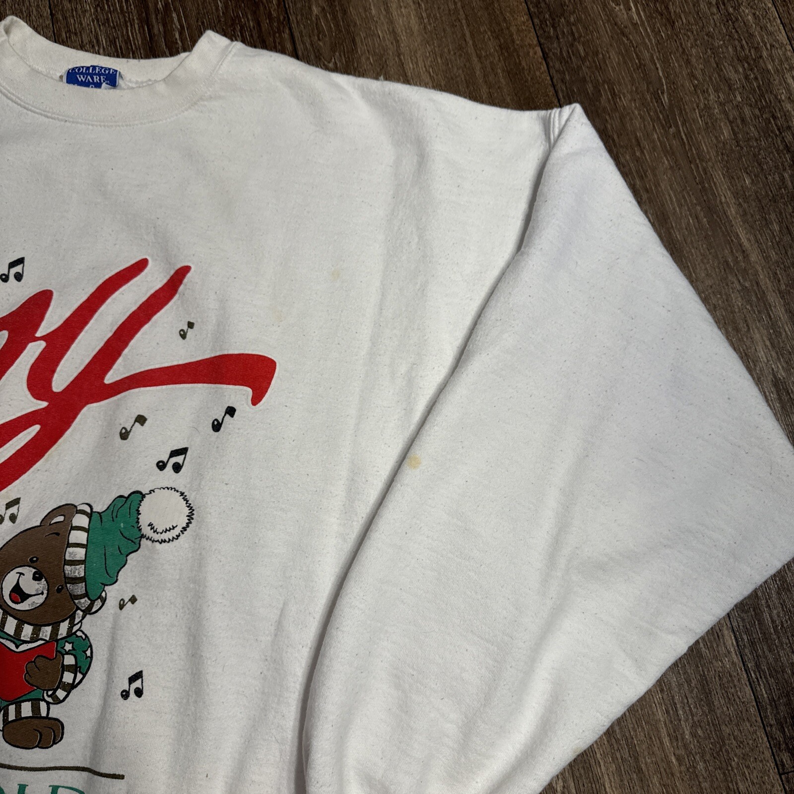 как выглядит Vintage 80s 90s Christmas Bear Joy to The World Crewneck Sweatshirt XL фото