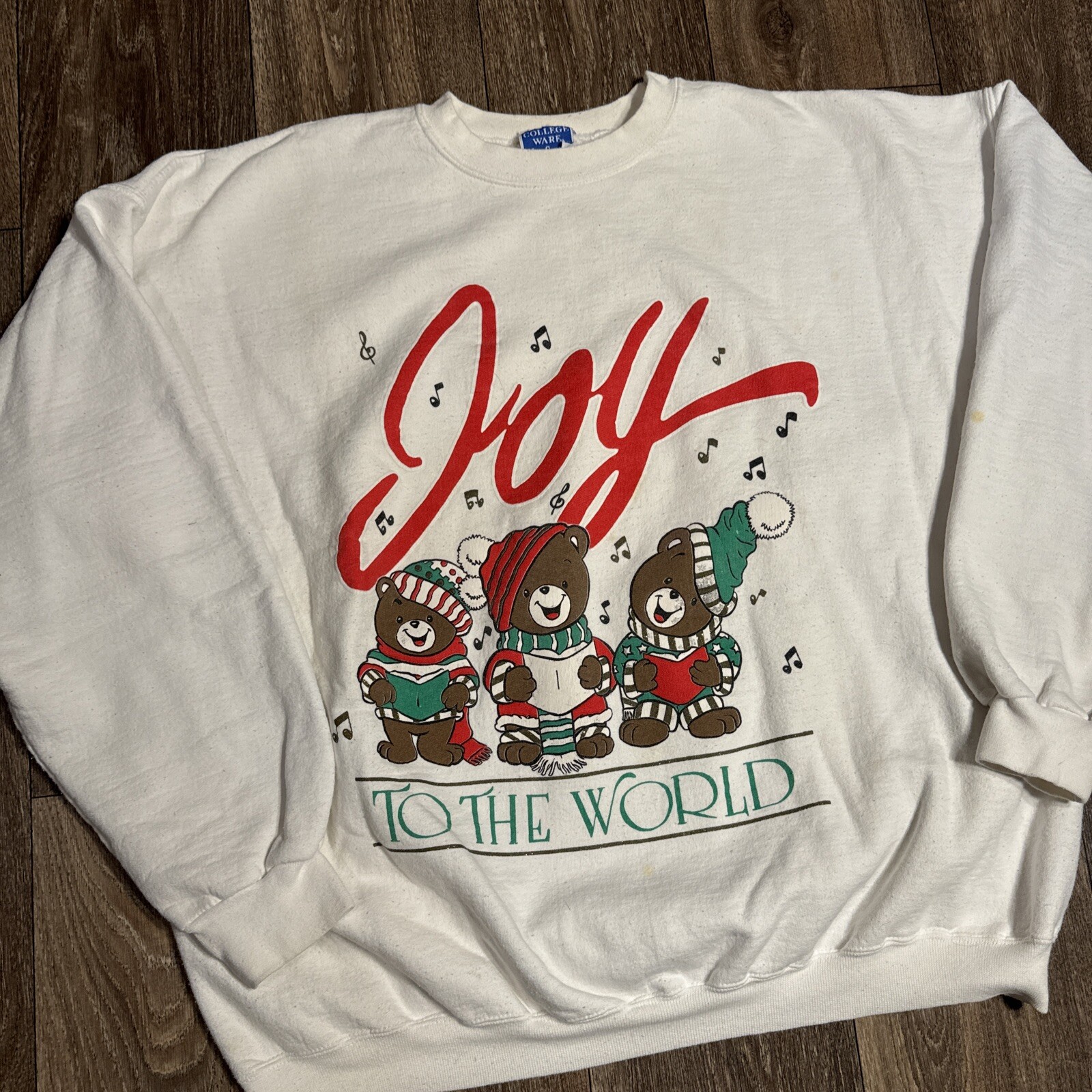 Vintage 80s 90s Christmas Bear Joy to The World Crewneck Sweatshirt XL