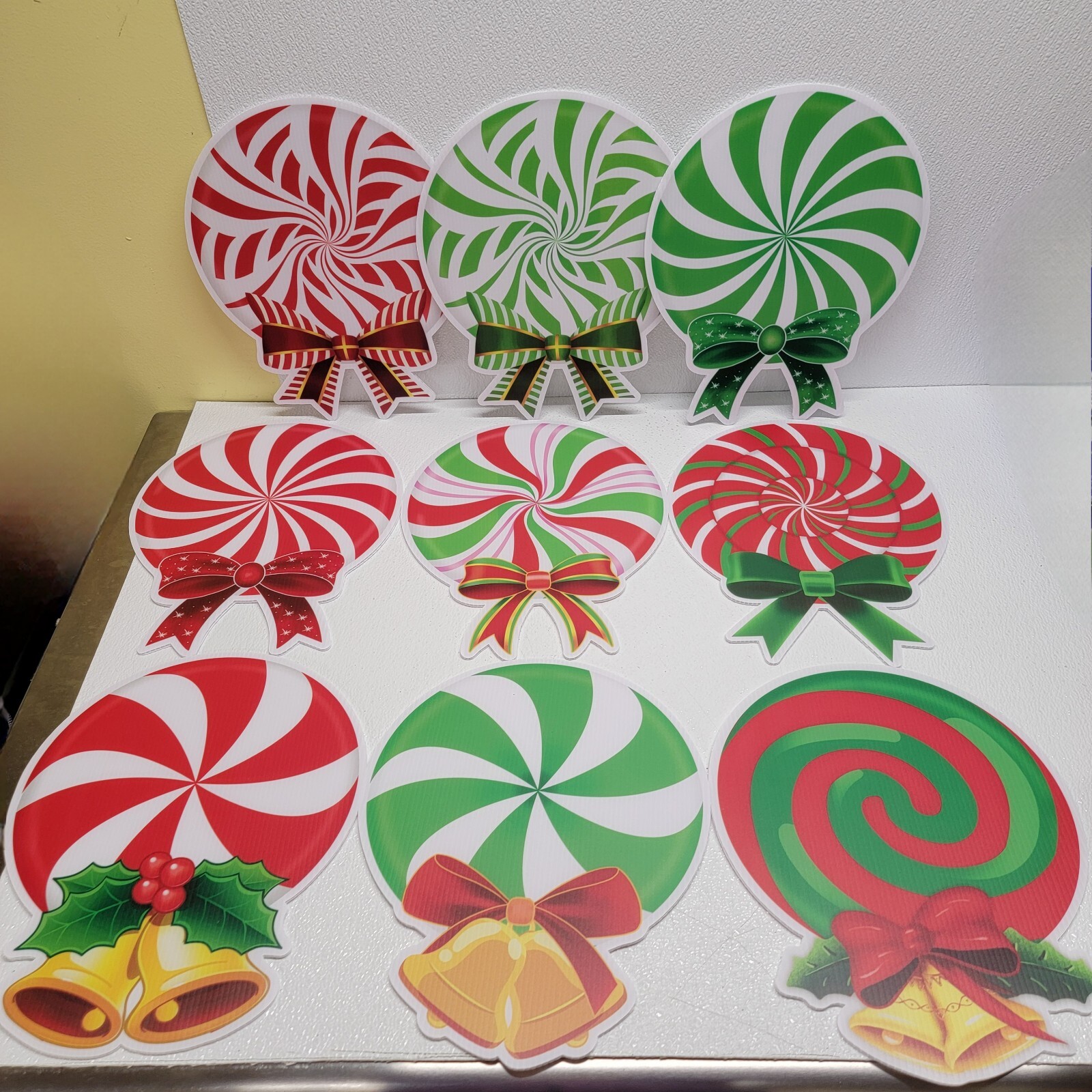 Christmas Decorations Peppermint Candy Yard Signs Stakes Xmas Holiday Gift 30PCS