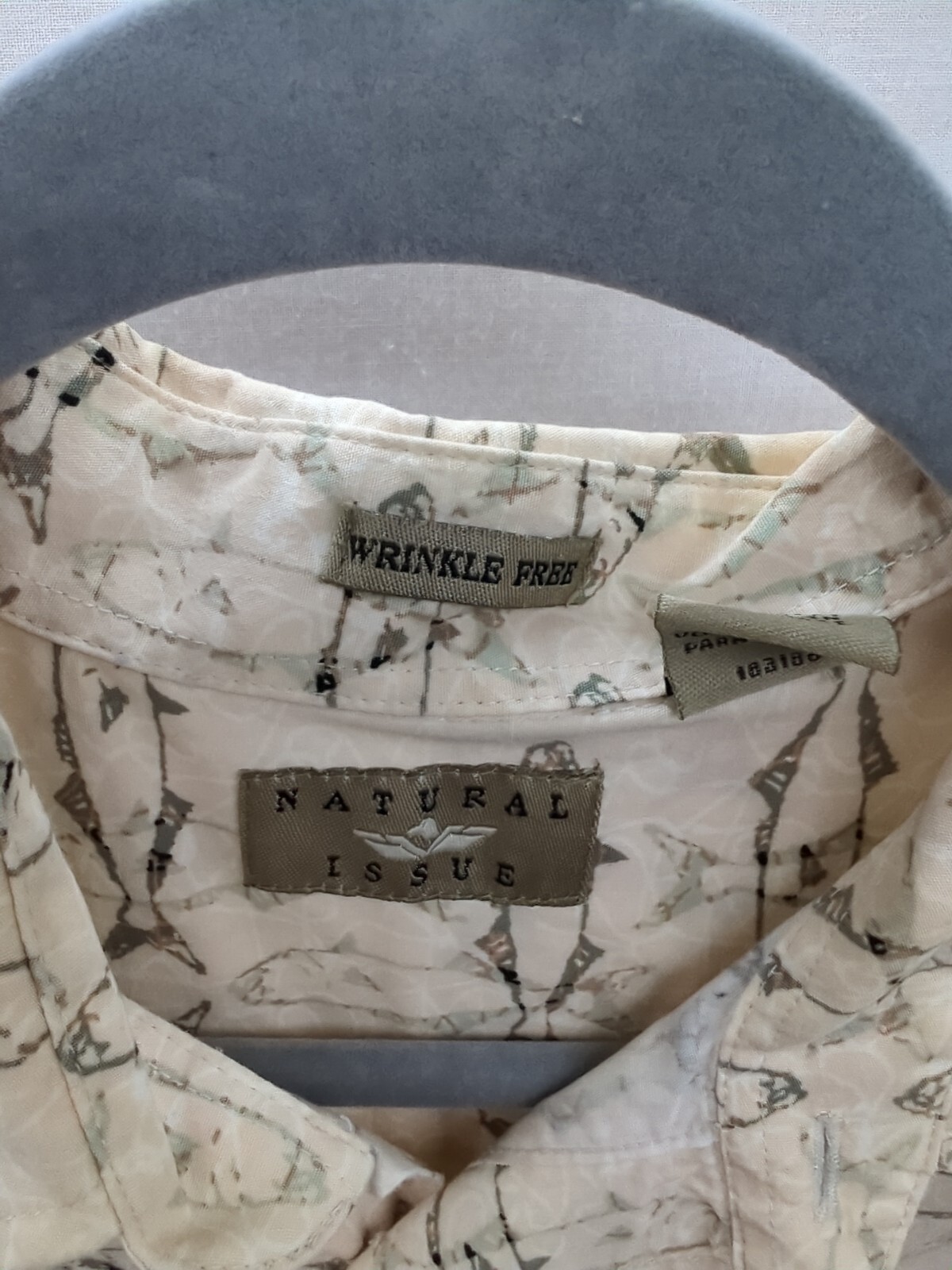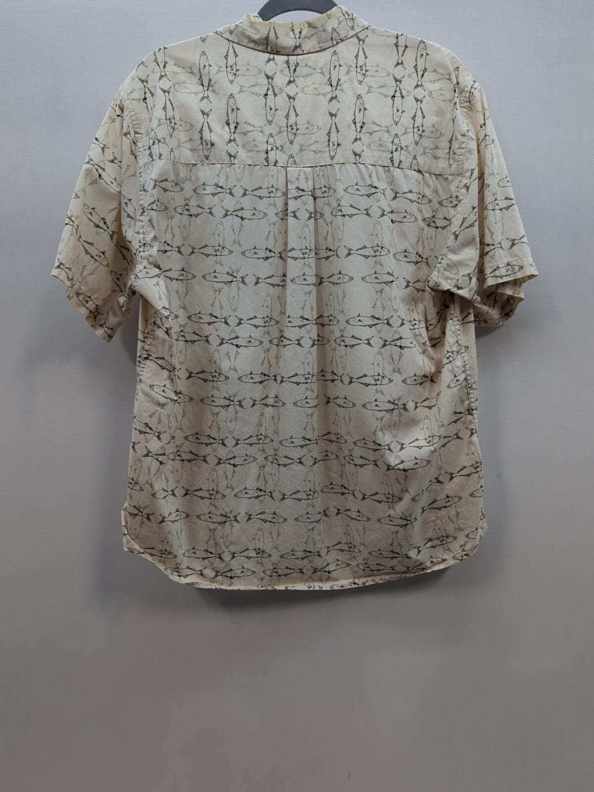 как выглядит Natural Issue Mens Short Sleeve Tan Green Dress Shirt w/ Fish Size Large фото