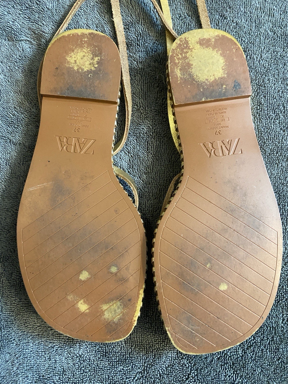 как выглядит Zara gold leather gladiator sandals Size 37 фото
